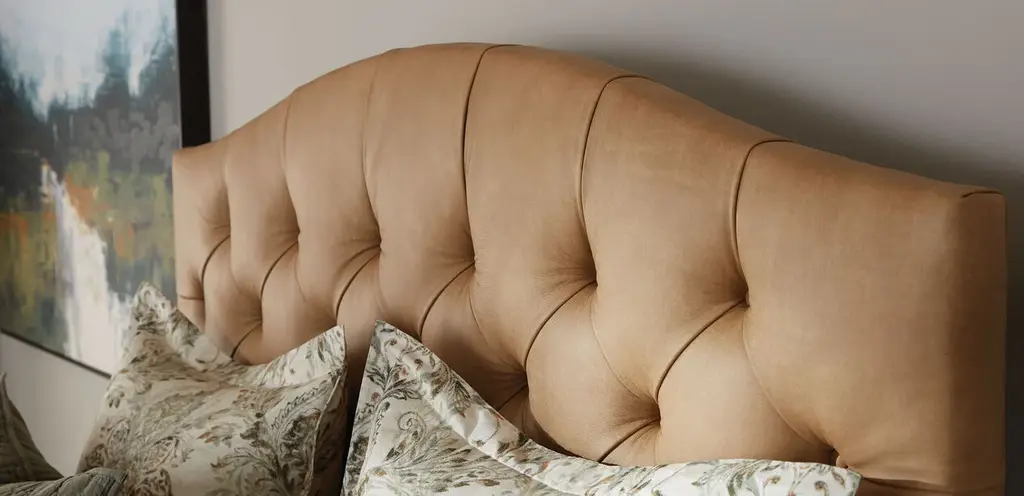 Our Rania Custom Leather Headboard sports dramatic curves that add glamour to any bedroom. Choose your height, from a subtle low profile to a more striking silhouette, then choose a leather you see here or visit a Design Center for even more exclusive options. North American artisans will tailor your leather to its frame, then add your choice of luxurious details like diamond tufting, or you can keep the look sleek with a smooth back.