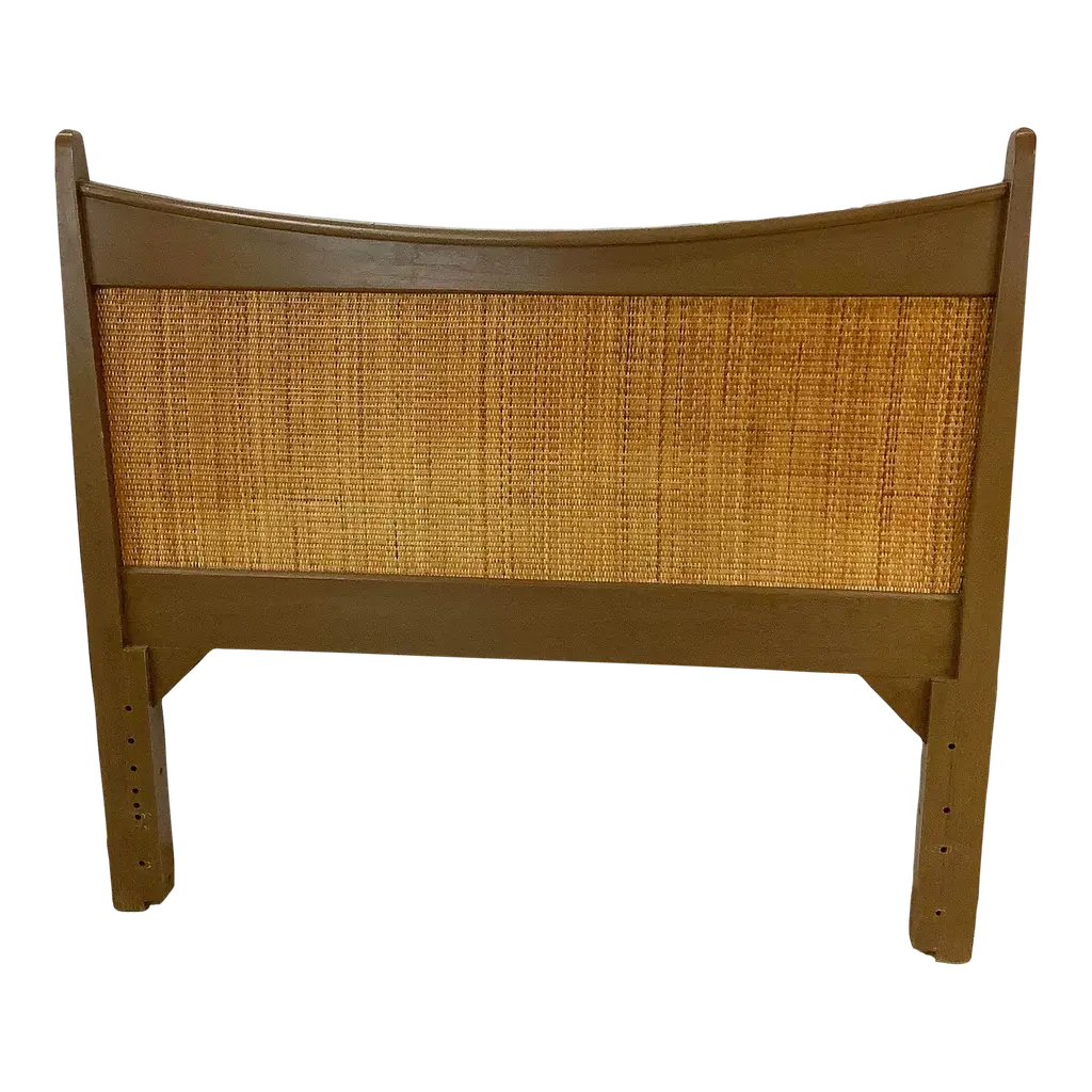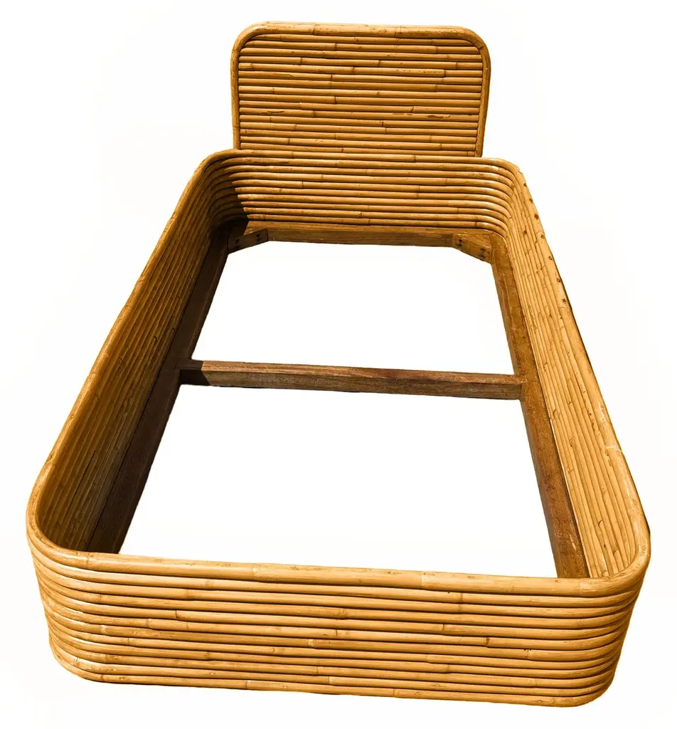 Restored Art Deco Stacked Rattan Twin Size Bed Frame &Headboard, 2 Available