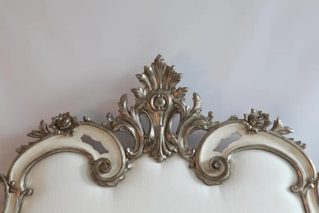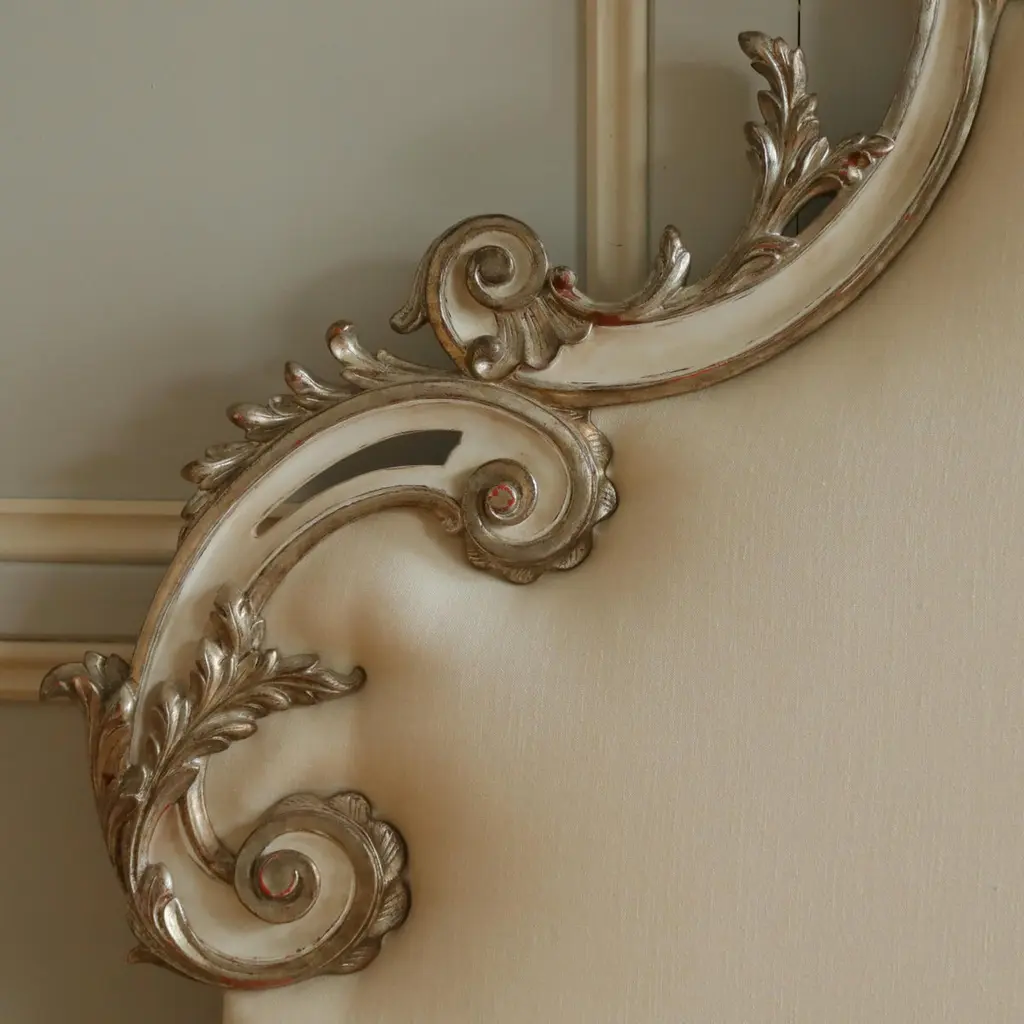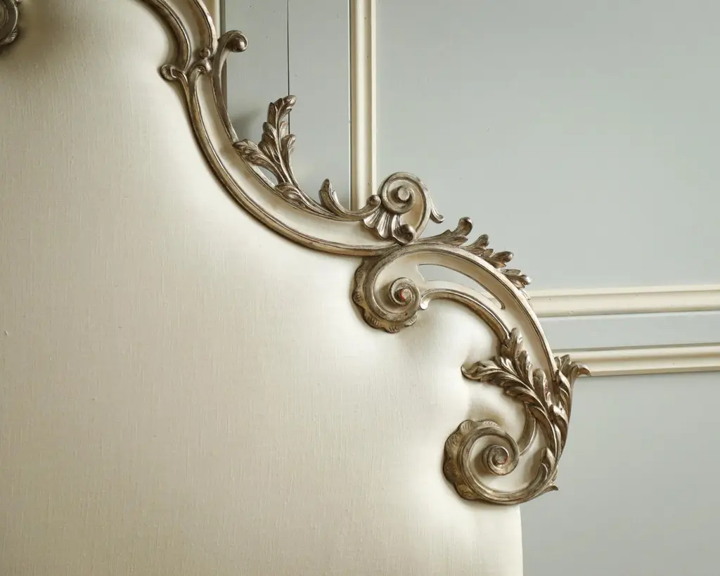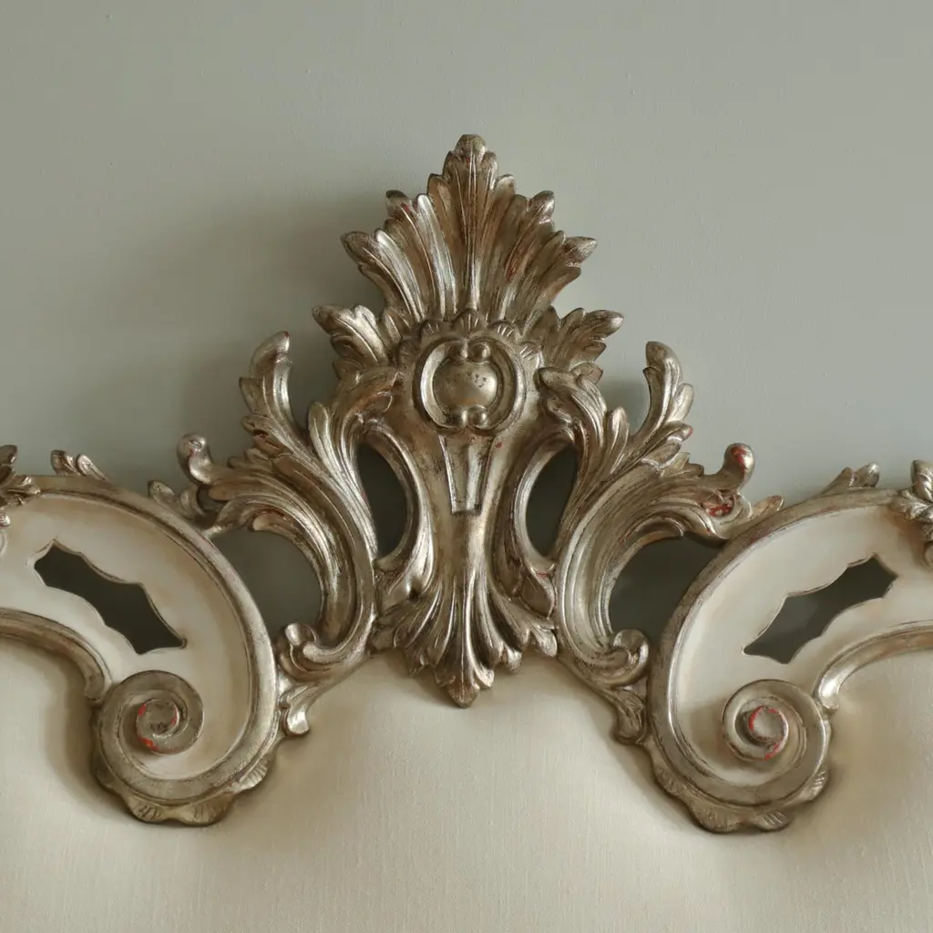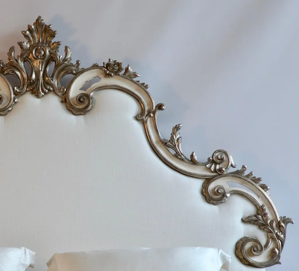 Rococo Headboard In Antique White With Silver Highlights