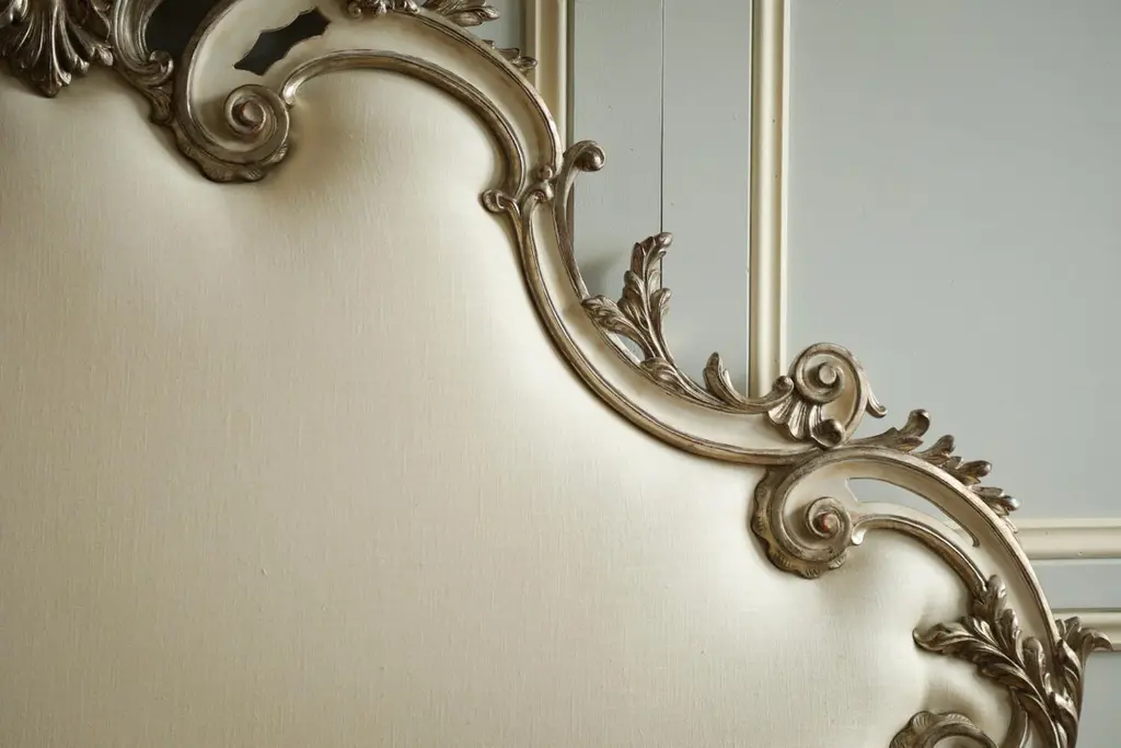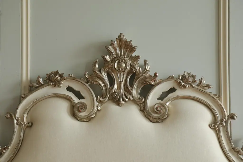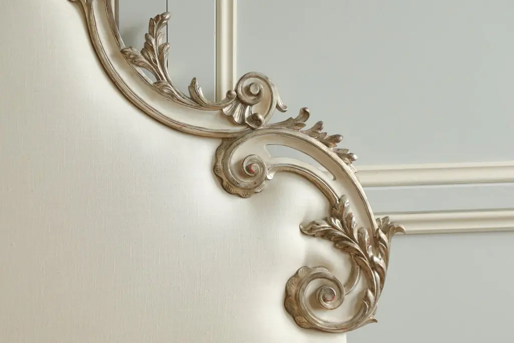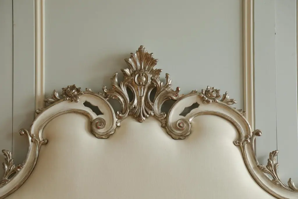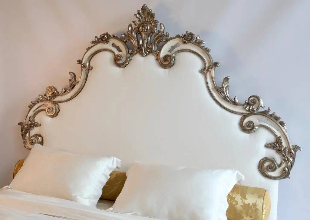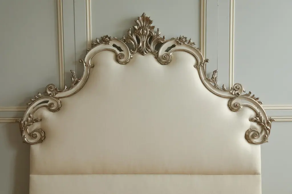 Rococo Headboard In Antique White With Silver Highlights