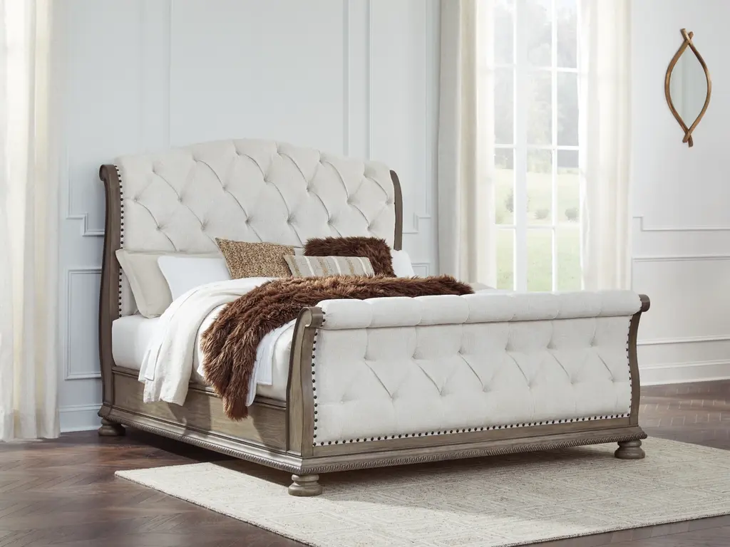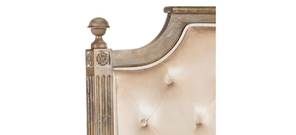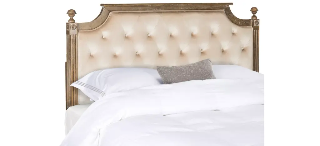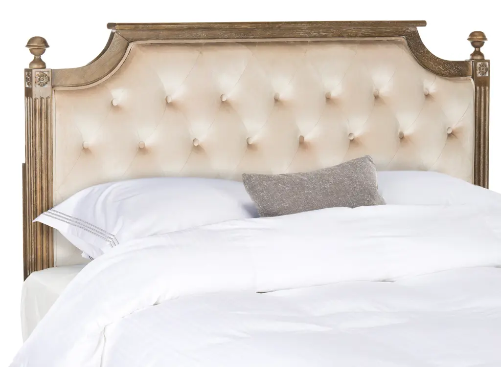 Designed for those who have mastered an elevated art of discernment, this Rustic Wood Full Upholstered Headboard is a modern heirloom. Finely crafted in a rustic oak wood finish with intricate detail, its tufted beige velvet upholstery blends seamlessly into any chic boudoir.
