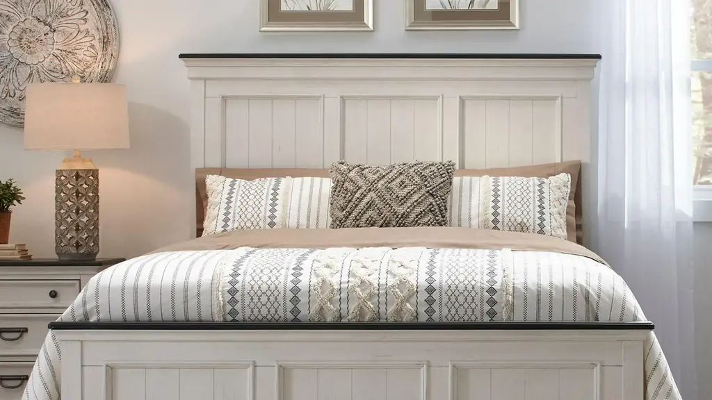 Designed with grace and distinction, the Shelby Panel Headboard creates a contemporary stylized vibe. It looks charmingly luxurious with clear lines and classic molding. The natural wood's two-toned finish adds a rustic vibe to refresh your bedroom.