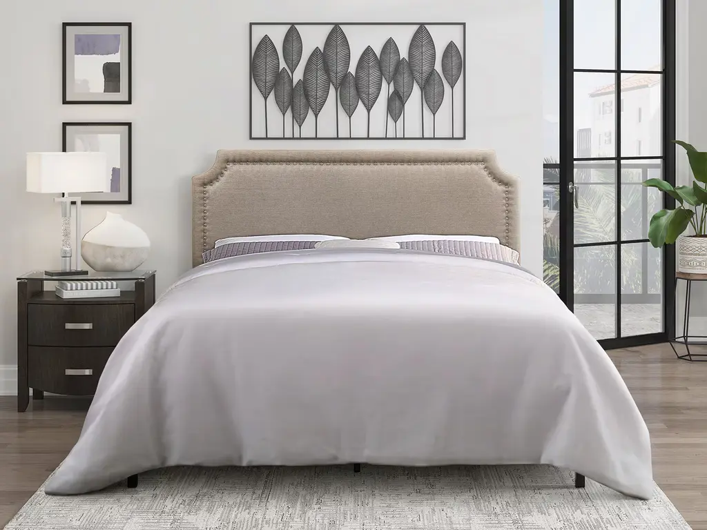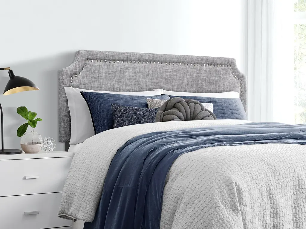 Elevate your décor—and your sleep—with the simple elegance of the Sleepy's Harper Headboard, a French countryside inspired headboard. Padded for a timeless look and comfort, silver nail head finishing adds style and a refined appearance to what will become the centerpiece of your bedroom. Constructed with a durable, hardwood frame, this headboard is a breeze to assemble and install.