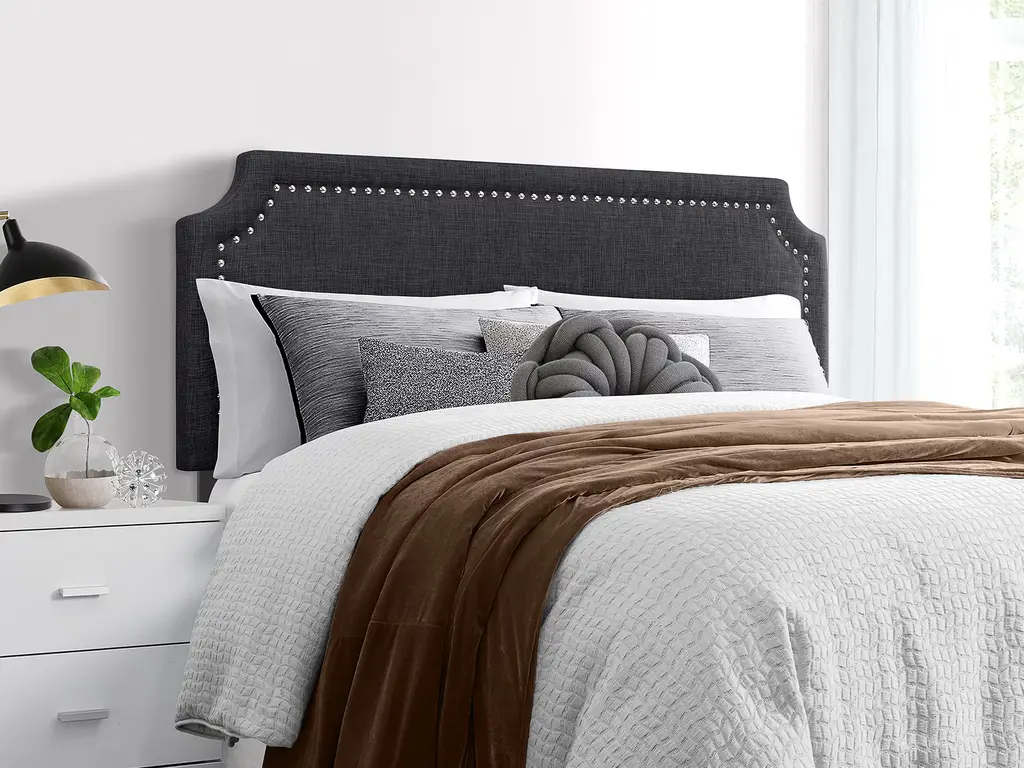 Elevate your décor—and your sleep—with the simple elegance of the Sleepy's Harper Headboard, a French countryside inspired headboard. Padded for a timeless look and comfort, silver nail head finishing adds style and a refined appearance to what will become the centerpiece of your bedroom. Constructed with a durable, hardwood frame, this headboard is a breeze to assemble and install.