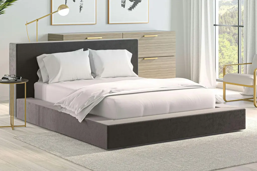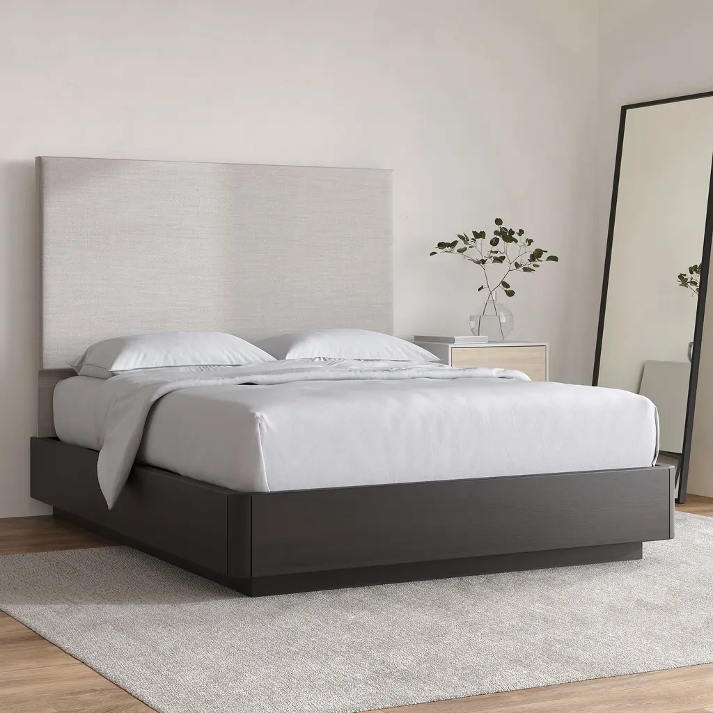 The clean lines and simple silhouette. Available in your choice of upholstery to find the perfect fit. Can be wall mounted for increased security and versatility in your bedroom. Contract Grade, so you know it's built to last.