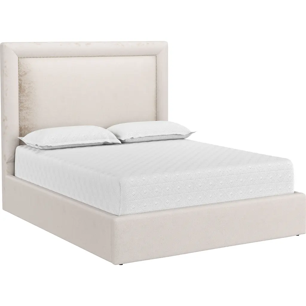 Soft Tweed Fabric Winged Headboard Bed - Light Gray / King