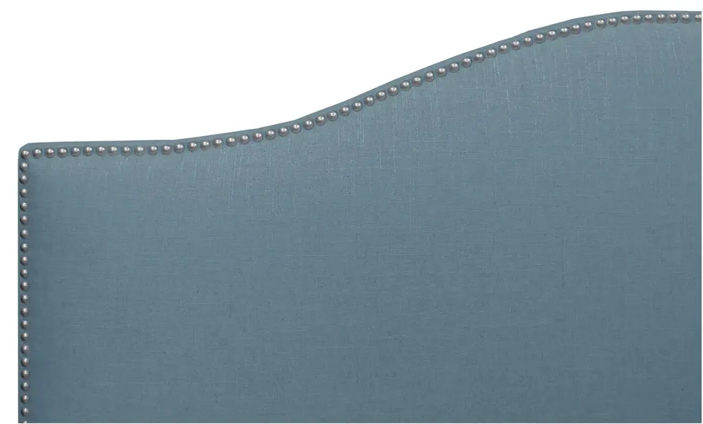 A One Kings Lane exclusive: Upholstered in neutral linen-blend fabric, this headboard's smooth camelback silhouette is highlighted by a steel nailhead trim. We love how its generous padding offers soft, structured support for watching TV or reading in bed. Attaches to any standard bed frame. Handcrafted in the USA.