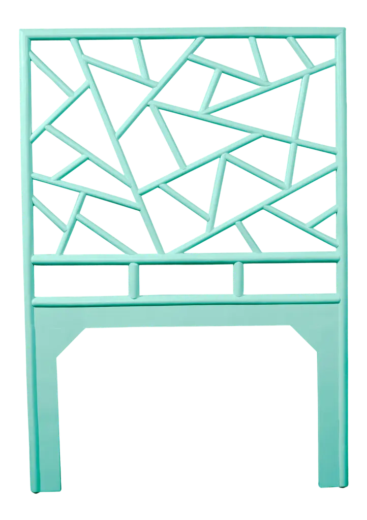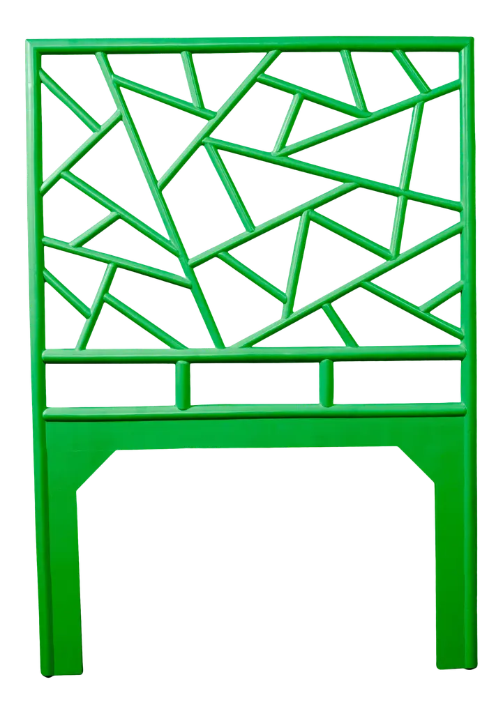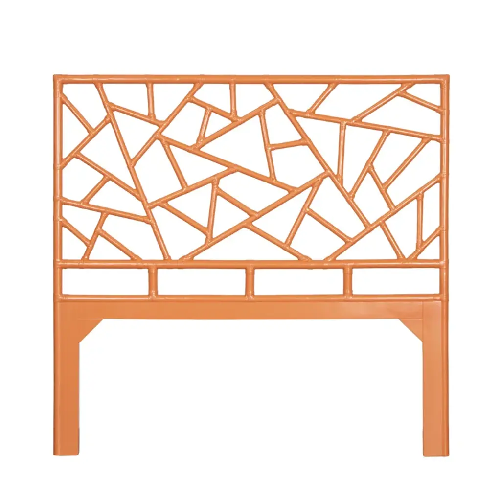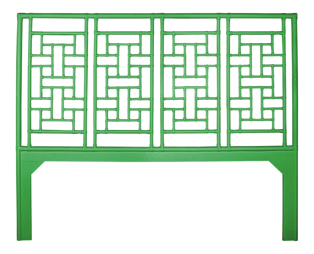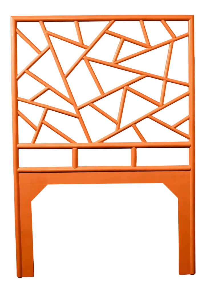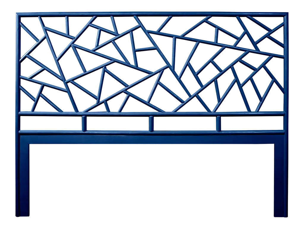 This headboard features classic Rattan design in a geometric pattern. Constructed of solid rattan and hand bound with rawhide bindings. This headboard can be attached to any standard bed frame or hung on the wall. Each headboard is hand finished in the USA and made to order, please allow time for delivery.