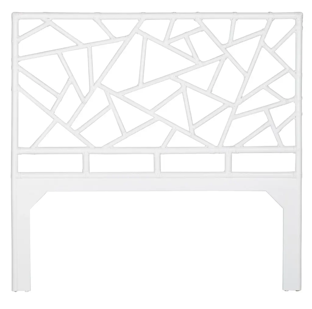 This headboard features classic Rattan design in a geometric pattern. Constructed of solid rattan and hand bound with rawhide bindings. This headboard can be attached to any standard bed frame or hung on the wall. Each headboard is hand finished in the USA and made to order, please allow time for delivery.