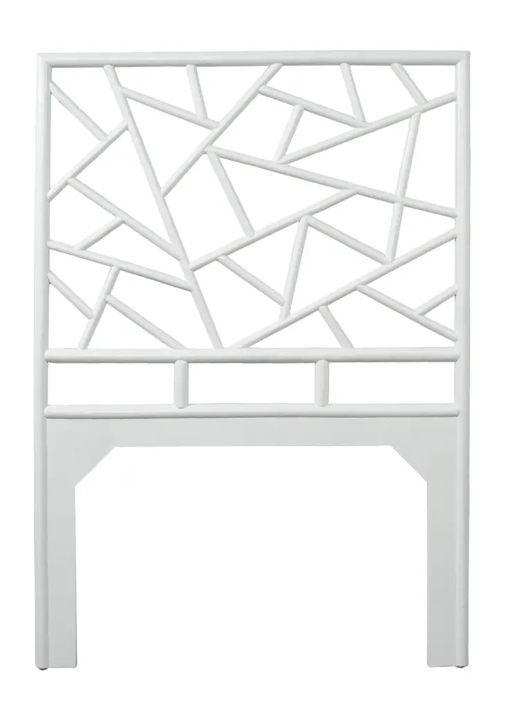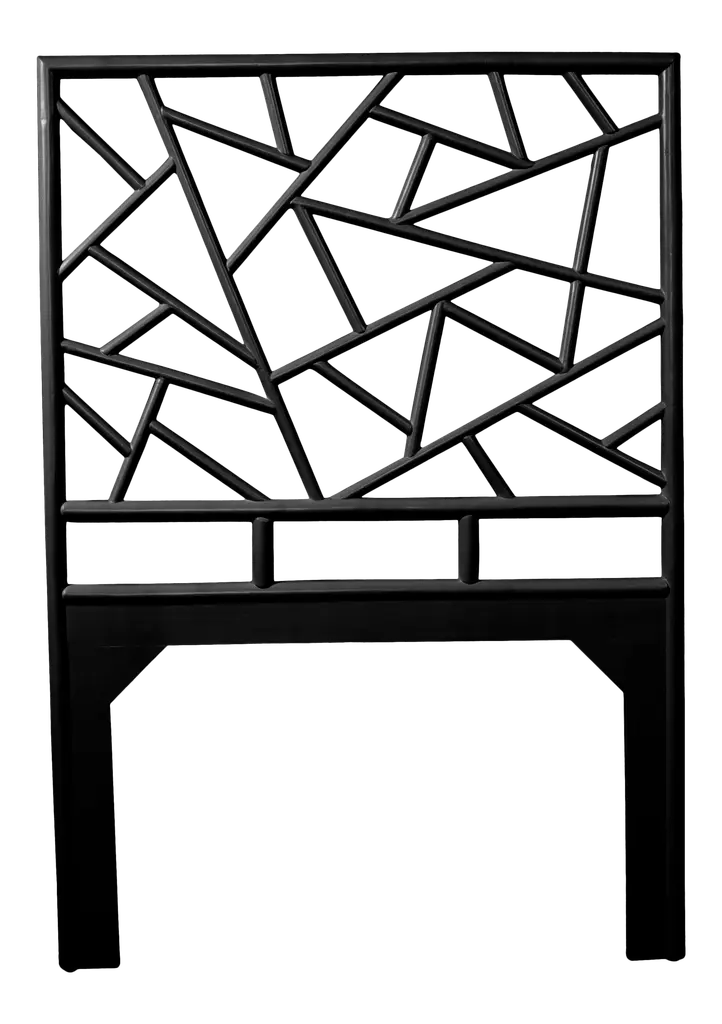 This headboard features classic Rattan design in a geometric pattern. Constructed of solid rattan and hand bound with rawhide bindings. This headboard can be attached to any standard bed frame or hung on the wall. Each headboard is hand finished in the USA and made to order, please allow time for delivery.