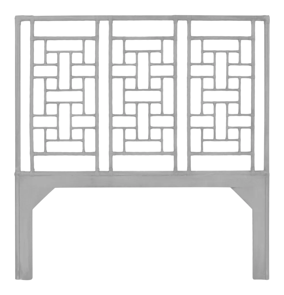 This headboard features classic Rattan design in a geometric pattern. Constructed of solid rattan and hand bound with rawhide bindings. This headboard can be attached to any standard bed frame or hung on the wall. Each headboard is hand finished in the USA and made to order, please allow time for delivery.