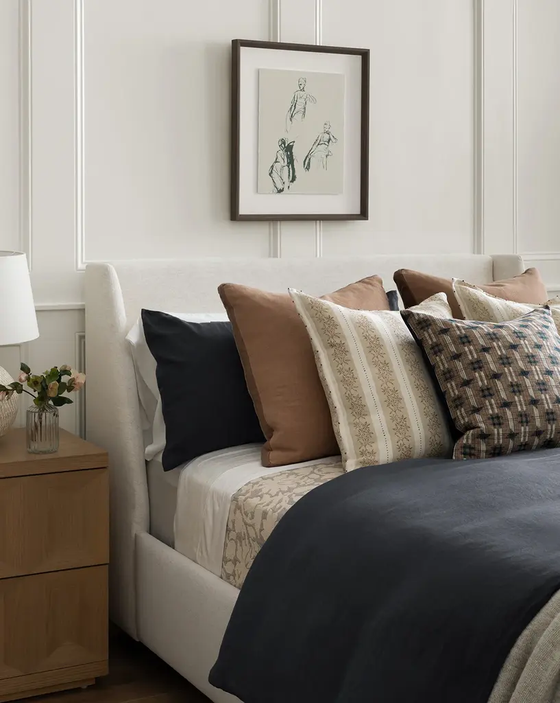 Streamlined with an angled headboard detail, our Walt Bed was designed with sophisticated-casual style in mind. Its upholstered frame is customizable in fabrics from performance crypton to luxury velvet, creating a look that's entirely unique to you and your space. Four solid oak tapered legs give added support and durability to withstand the years in both wear and style.