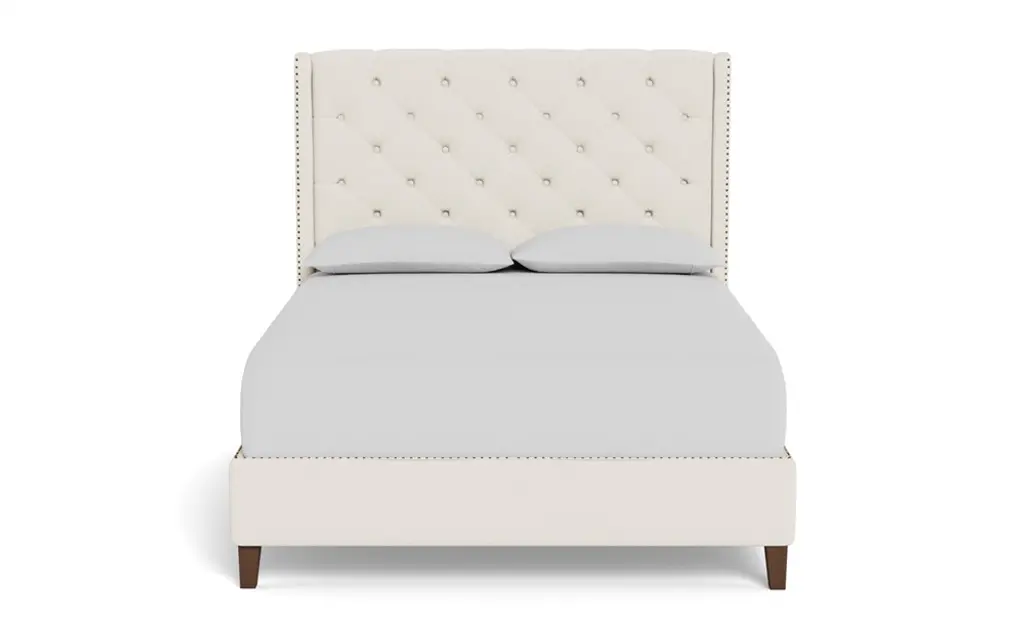 Framed by dramatic, luxurious wings, hand-tufted, and upholstered in leather. Our Woolson leather headboard is customizable in the Ethan Allen leather of your choice, with optional nailhead trim available.