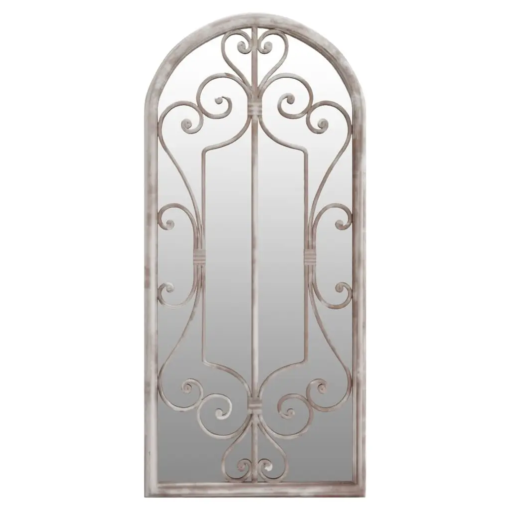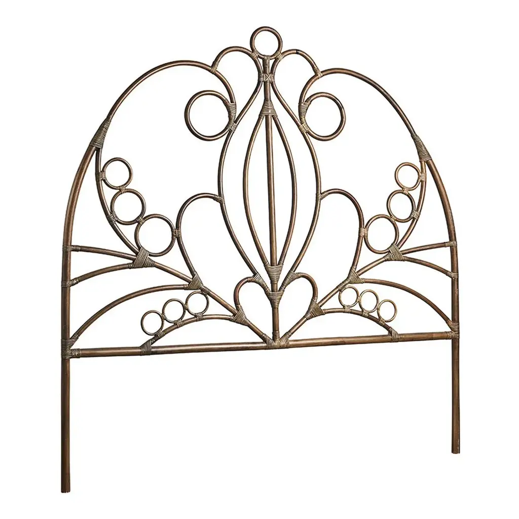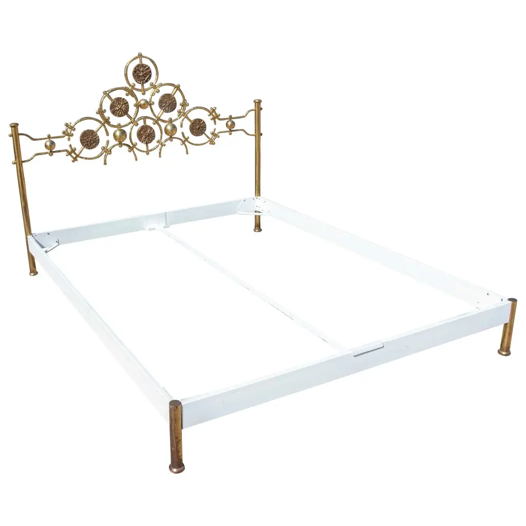 Well crafted pair of scrollwork wrought iron headboards suitable for twin size beds ( 44 inch total W. ) You can use these as two separate headboards by attaching a Hollywood frame to each, or create one bed / daybed by using one as a headboard and the other as a footboard. Priced and offered individually, but we would love to see them stay together. Height of decorative iron section of the bed 22 inch x total H 41 inch. Currently in original white paint finish, showing light cosmetic wear normal and consistent with age. We also offer custom powder coating if you prefer a more polished look.