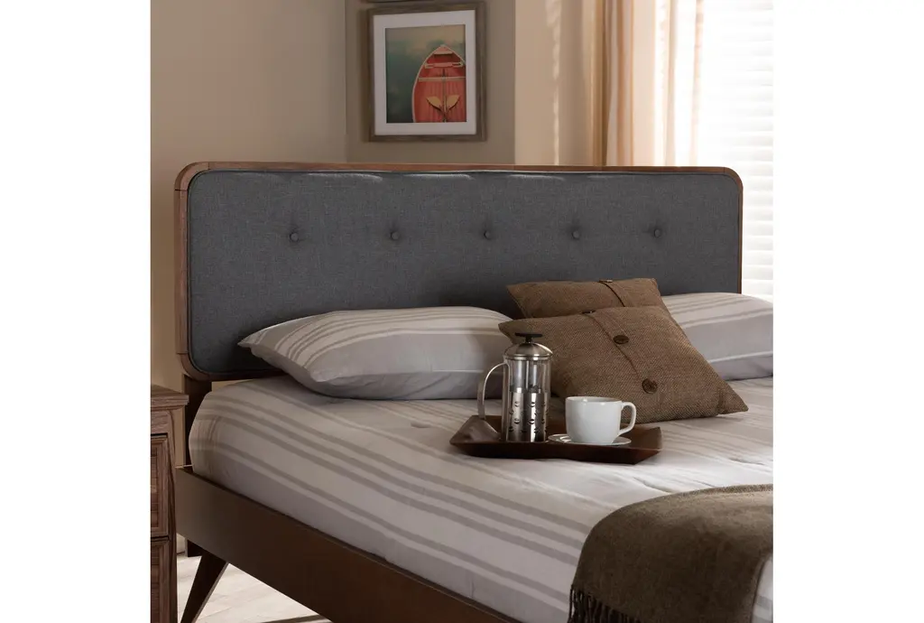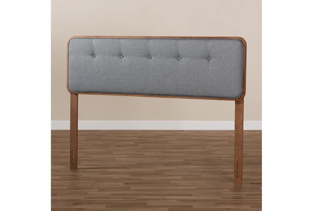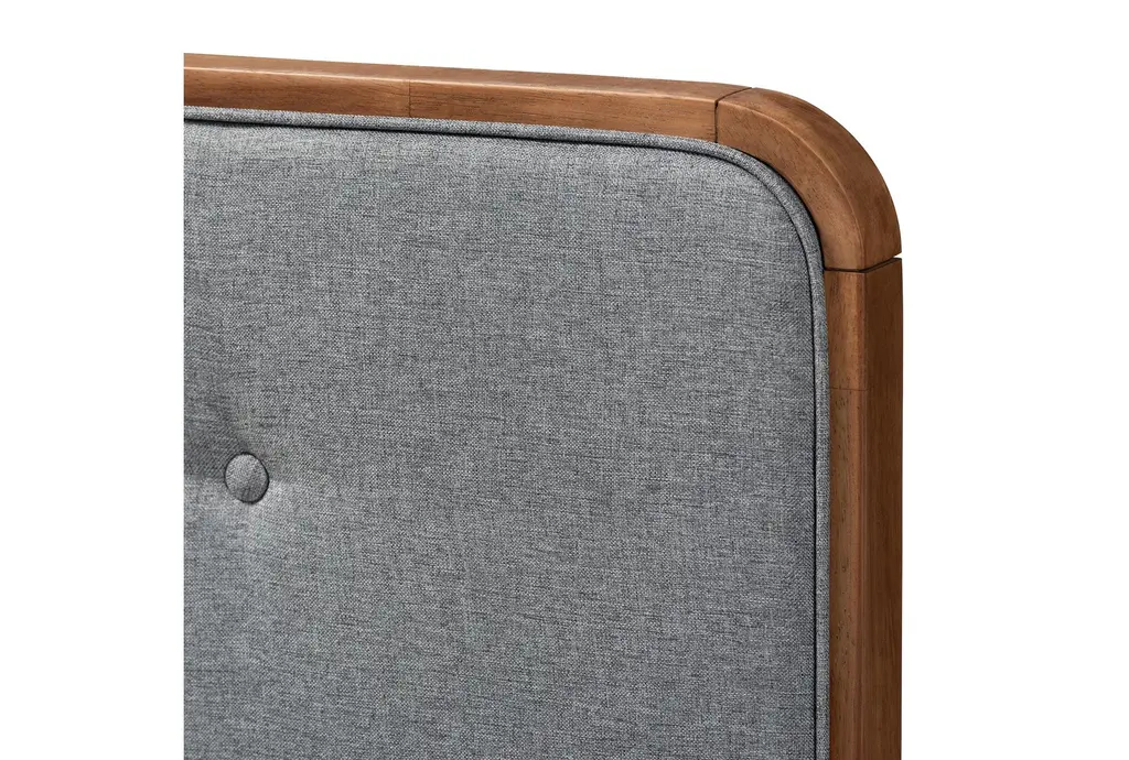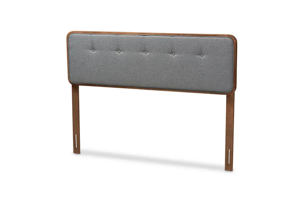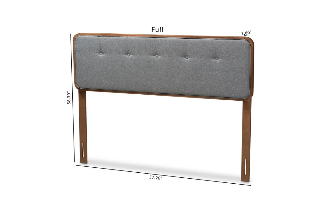 Wylow Full Dark Grey Upholstered Natural Fabric Walnut Brown Finish Wood Headboard