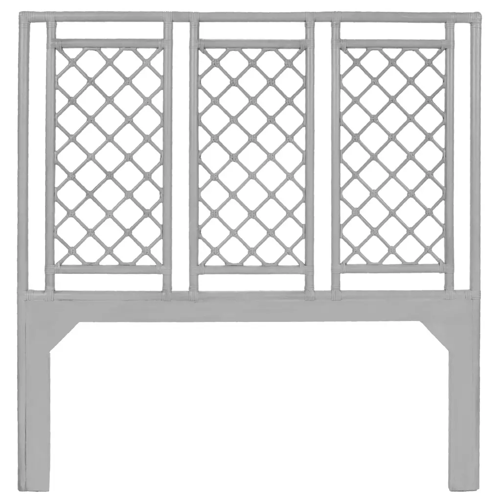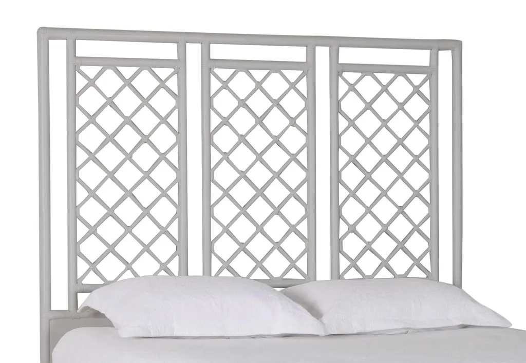 This headboard features classic Rattan design in a geometric pattern. Constructed of solid rattan and hand bound with rawhide bindings. This headboard can be attached to any standard bed frame or hung on the wall. Each headboard is hand finished in the USA and made to order, please allow time for delivery.