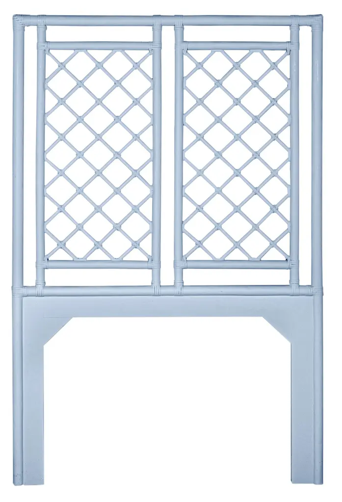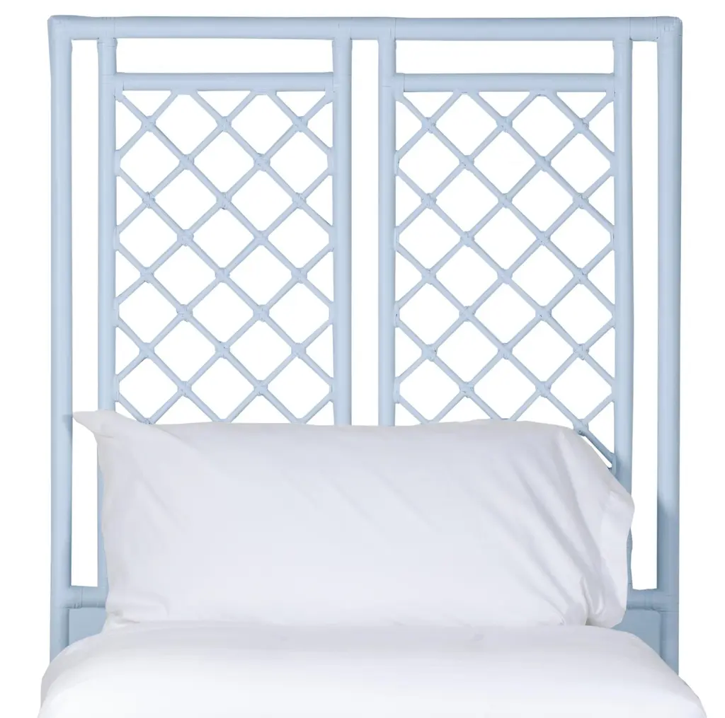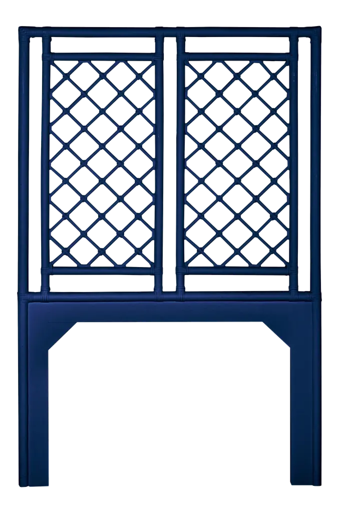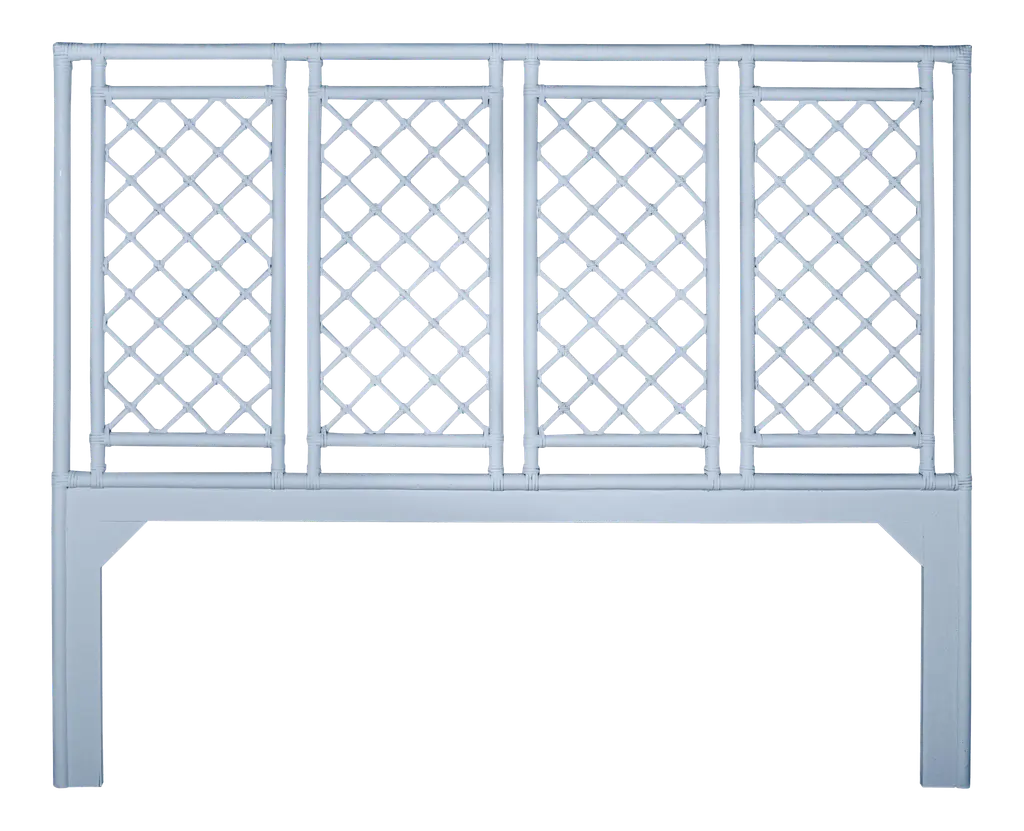 This headboard features classic Rattan design in a geometric pattern. Constructed of solid rattan and hand bound with rawhide bindings. This headboard can be attached to any standard bed frame or hung on the wall. Each headboard is hand finished in the USA and made to order, please allow time for delivery.