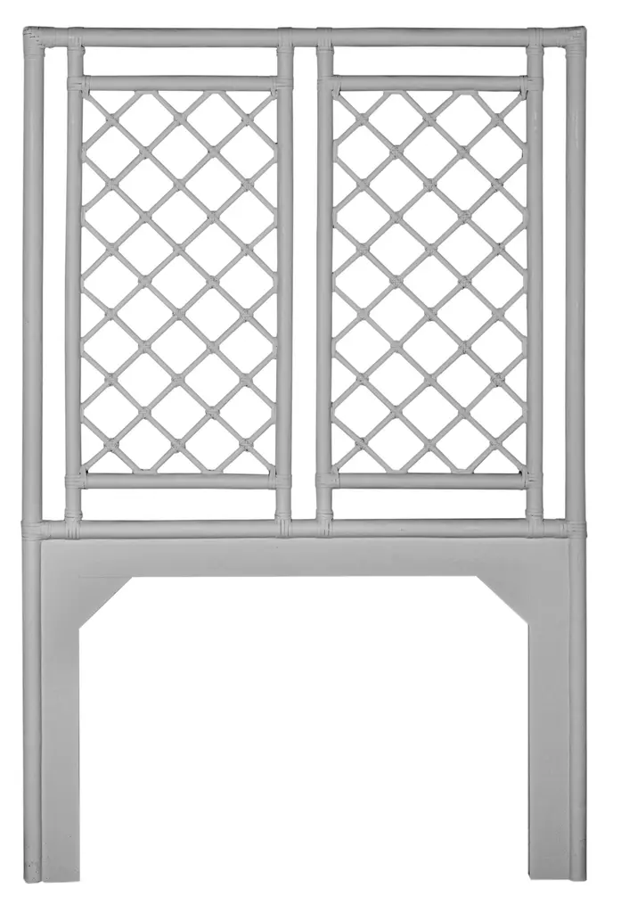 This headboard features classic Rattan design in a geometric pattern. Constructed of solid rattan and hand bound with rawhide bindings. This headboard can be attached to any standard bed frame or hung on the wall. Each headboard is hand finished in the USA and made to order, please allow time for delivery.