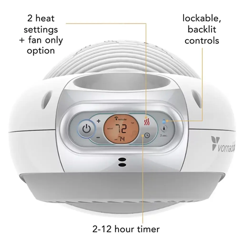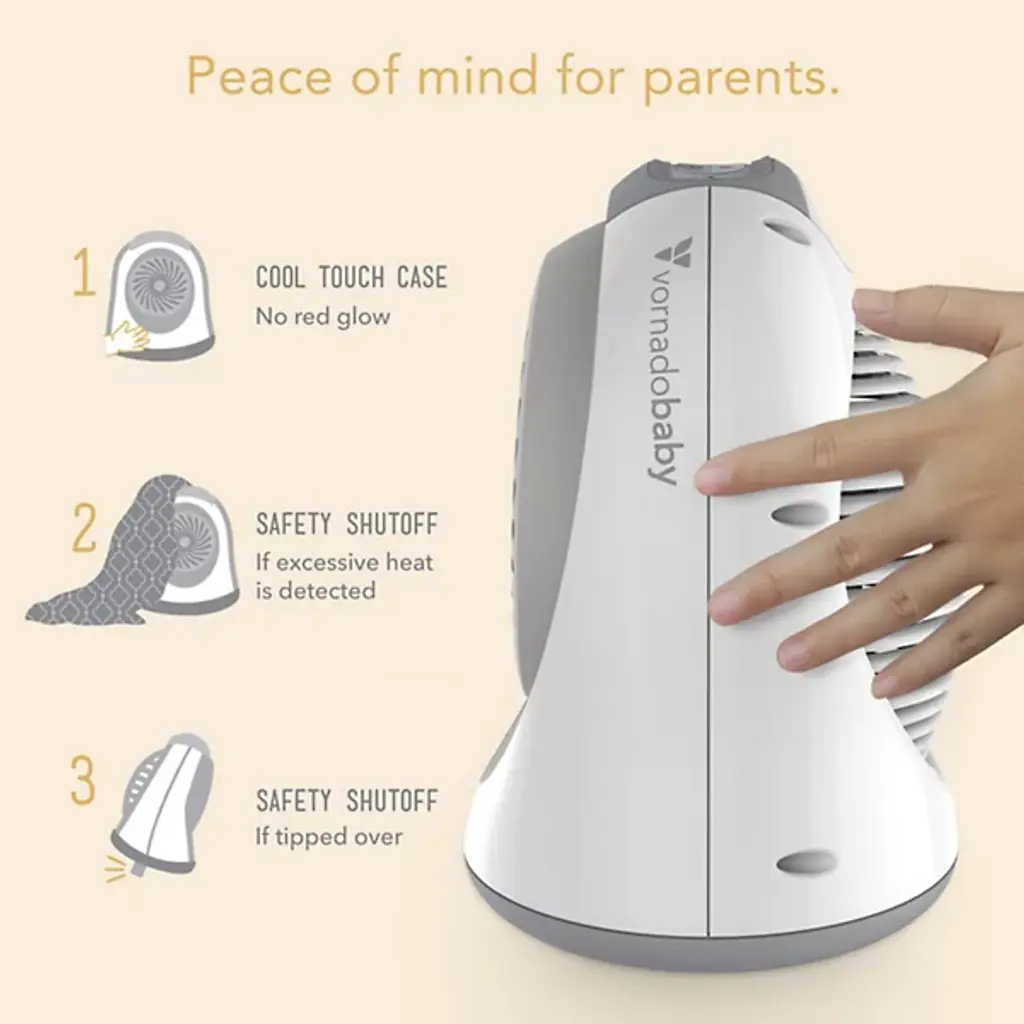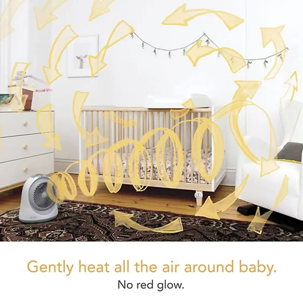 The Vornadobaby Sensa Nursery Space Heater from Vornado is the ultimate heater for nurseries. Vornado’s vortex heat circulation allows it to be placed anywhere in the room while keeping your baby warm and comfortable. Its Cribside Temp Sensing feature lets parents control the crib temperature remotely. Automatic Climate Control adjusts heat output and airflow for comfort, with 2 heat settings and a timer. It stays cool to the touch, features concealed cord management, and has lockable controls that glow for nighttime use. It automatically shuts off if tipped, and its tight grill design resists curious fingers.