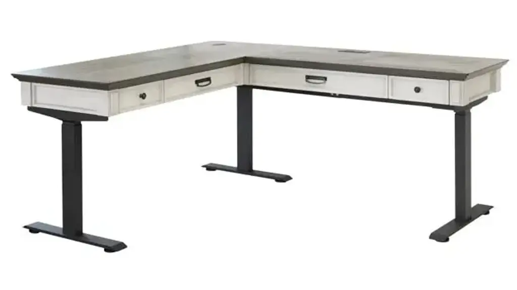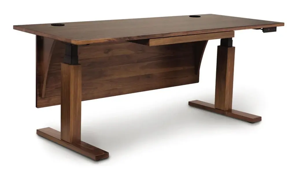 The Arden 60" Adjustable Standing Desk combines classic style with modern functionality, making it a perfect addition to any home office. Crafted from select hardwoods with oak and birch veneer, this desk features a motorized lift top with four memory positions, allowing you to adjust the height to your needs. The flip-down hidden compartment and dovetail joinery add to its timeless appeal.