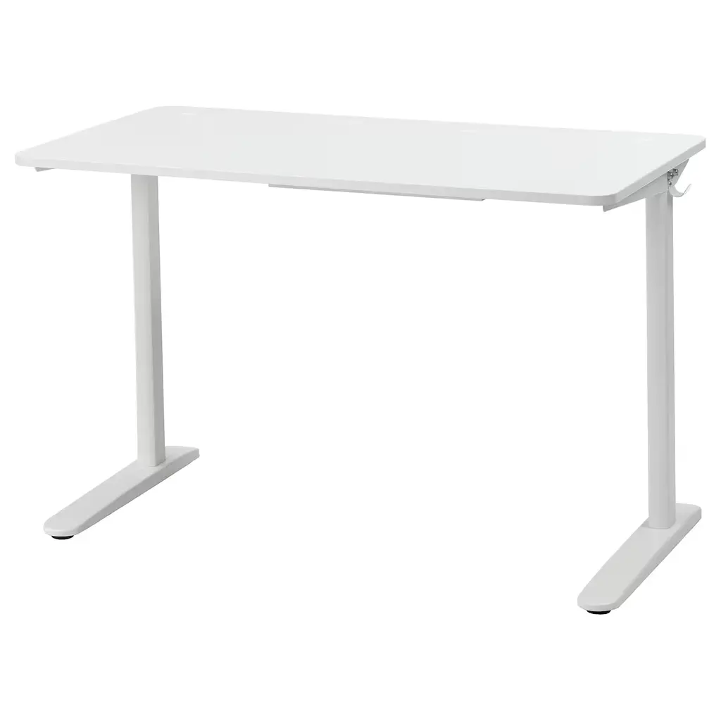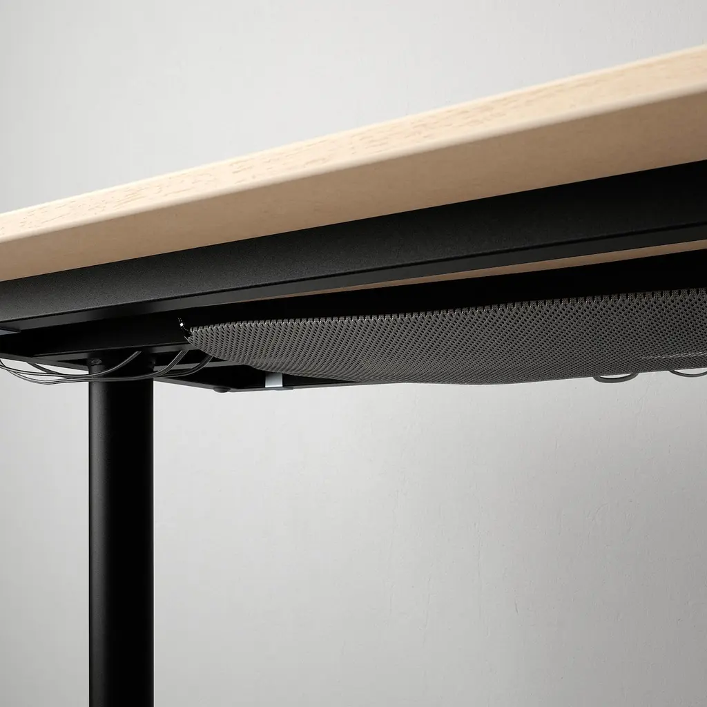 BEKANT Corner desk-right - white stained oak veneer/black 63x43 1/4 ". 10-year Limited Warranty. Read about the terms in the Limited Warranty brochure. You can mount the tabletop at a height that suits you, since the legs are adjustable between 25⅝ - 33½".