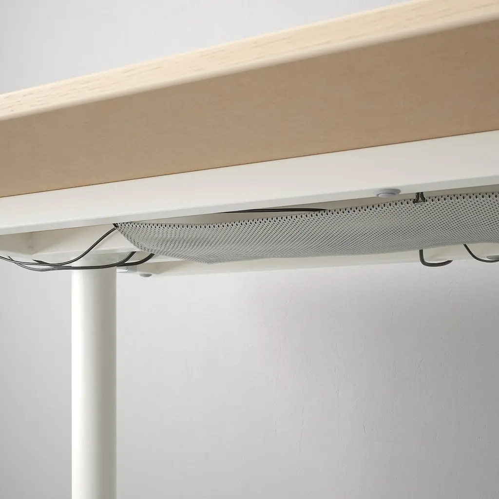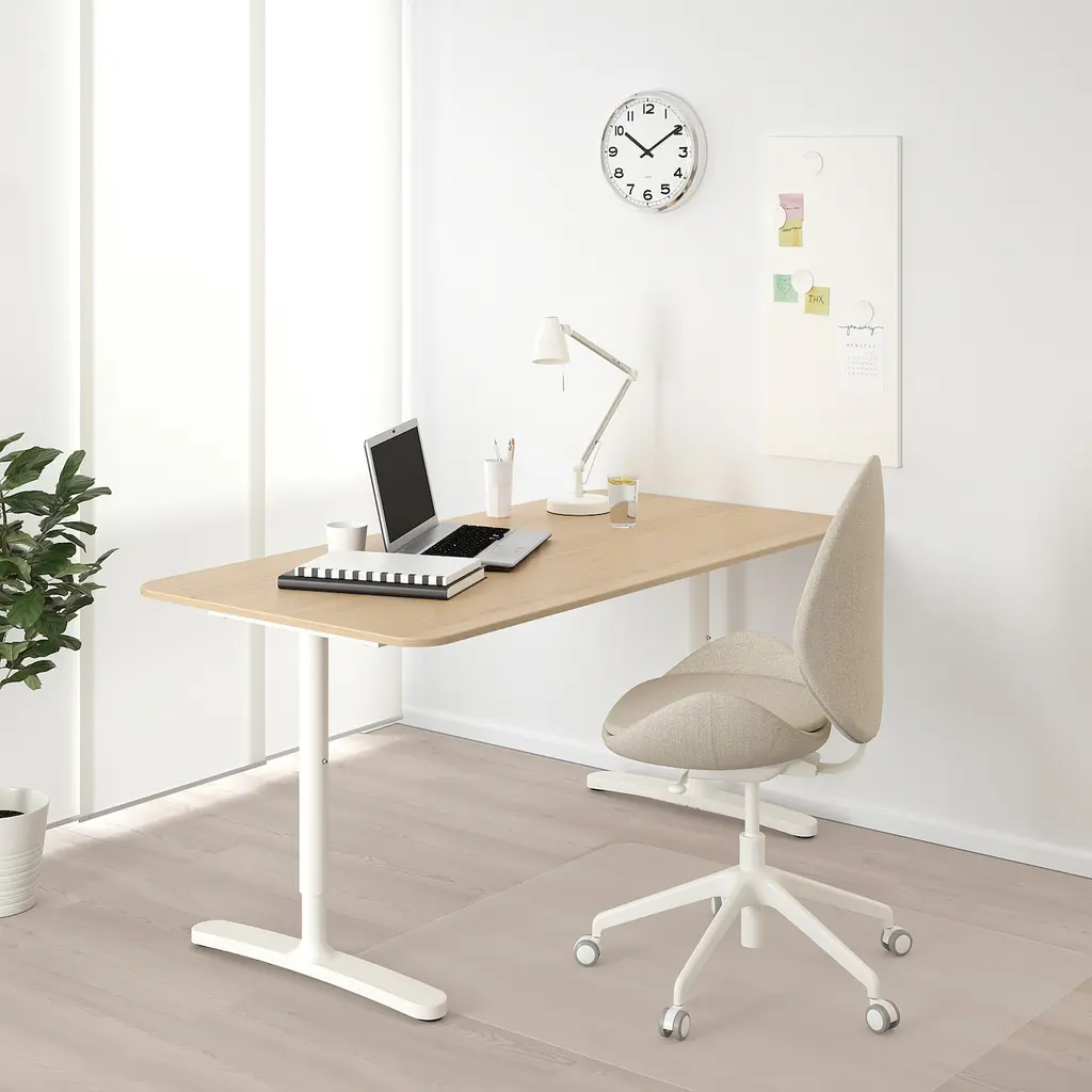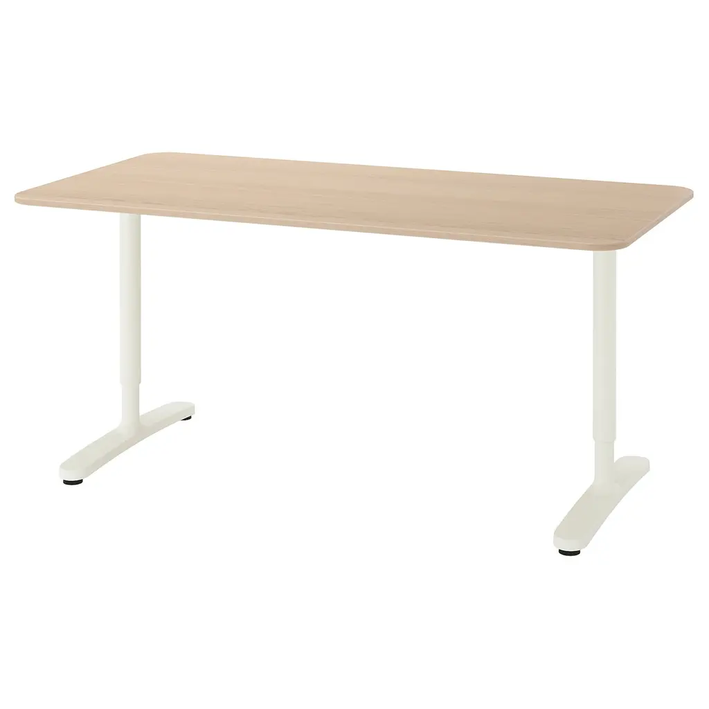 BEKANT Desk - white stained oak veneer/white 63x31 1/2 ". 10-year Limited Warranty. Read about the terms in the Limited Warranty brochure. You can mount the tabletop at a height that suits you, since the legs are adjustable between 25⅝ - 33½".