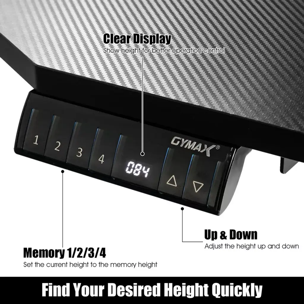 The standing gaming desk allows you to adjust the standing or sitting office mode to create a healthier working environment. At the same time, it can also be regarded as a computer desk in the office, or as a writing desk in the study room. As long as you press the button of the control panel, you will quickly get the new height you want or the memory heights. When adjusting the height, this gaming table runs at a speed of 0.8''/s and the noise is less than 50dbs. With the help of the display, you can better control the height adjustment. The spacious desktop meets your daily storage needs. The curved edge design makes your hands more comfortable. The full covered mouse pad will extend the service time of the carbon fiber desktop.FeaturesColor: Black Material: Engineered Wood , PVC, Iron Product Dimension: 47'' x 24.5'' x 28.5'' - 45.5'' (L x W x H) Power (nothing): 55 W Power (with 176 lbs items): 130W Speed: 0.8''/s Noise: <50 dbs Net Weight: 67 lbs Weight Capacity: 176 lbs Package Includes: 1 x Stand Up Gaming Desk 1 x Full-covered Mouse Pad 1 x Instruction