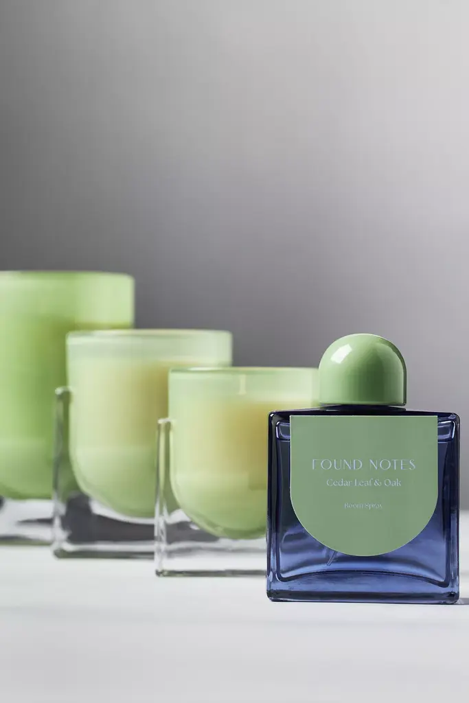 Find, keep, share. Designed exclusively at Anthropologie, Found Notes makes a bright, modern statement with sculptural vessels and a range of uplifting fragrances. **Cedar Leaf & Oak (Woody Fresh):** A burst of lemon, petitgrain, and crisp fresh greens dance above warm amber, cypress, and sandalwood, grounded in cedar, oak, and musk's embrace.
