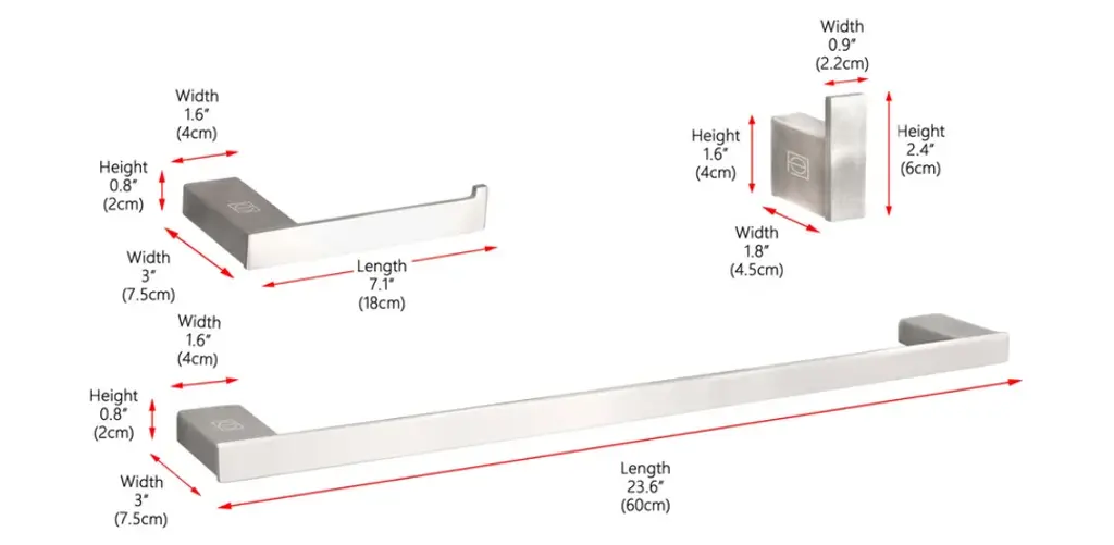 Introducing our Bathroom Hardware Set, available in a range of stunning finishes including brushed gold, brushed nickel, Chrome, and Matte Black. This comprehensive set is designed to elevate your bathroom, providing a well-organized and stylish space. It includes a 23.6" long towel bar, a 7.1" long toilet paper holder, and a practical 2.4" towel/robe hook, ensuring all your bathroom needs are met. Crafted from high-quality stainless steel, our hardware set not only adds a touch of luxury to your bathroom but also guarantees unrivaled durability. Stainless steel's inherent resistance to corrosion, stains, rust, and scratches ensures that your bathroom maintains its stunning appearance, just as it did on installation day. The open-ended design of the toilet paper holder simplifies roll replacement, offering both convenience and practicality. Installation is a breeze, with all the required mounting hardware included in the package, making it a straightforward and hassle-free DIY project. Each item is meticulously designed for easy wall-mounted installation, saving space and providing a secure solution for your bathroom. The stainless steel finish not only adds visual appeal but is also easy to maintain, eliminating the need for frequent scrubbing and polishing. The minimalist design of our hardware set ensures its versatility and adaptability to complement any bathroom decor, making it the ideal addition to your space. Invest in a bathroom that remains as stunning as the day you installed it, thanks to our hardware set's corrosion, stain, rust, and scratch resistance. Experience the perfect blend of style, convenience, and durability, complete with straightforward installation and effortless maintenance. Transform your bathroom with our versatile and practical Bathroom Hardware Set, providing a comprehensive solution for a more organized, stylish, and well-structured space.