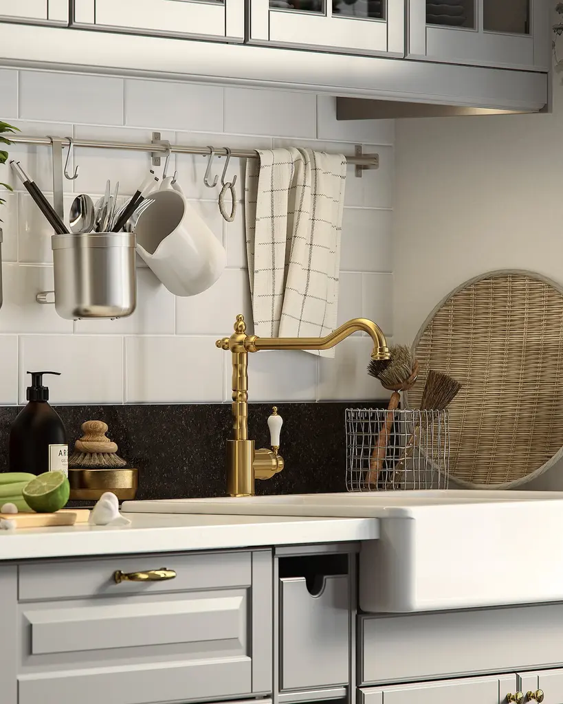 GLITTRAN Kitchen faucet - brass color. 10-year Limited Warranty. Read about the terms in the Limited Warranty brochure. The faucet insert has hard, durable ceramic discs that can handle the high friction that occurs when you change the temperature of the water. Swivel spout: 360°.