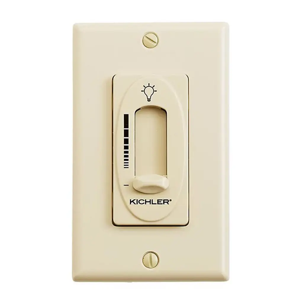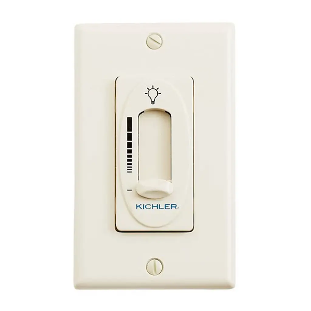 The Kichler Light Dimmer Slide Control is a full-range light dimmer that can be used with most Kichler ceiling fans. Controls one fan light or light fixture. Available in White, ivory and almond.