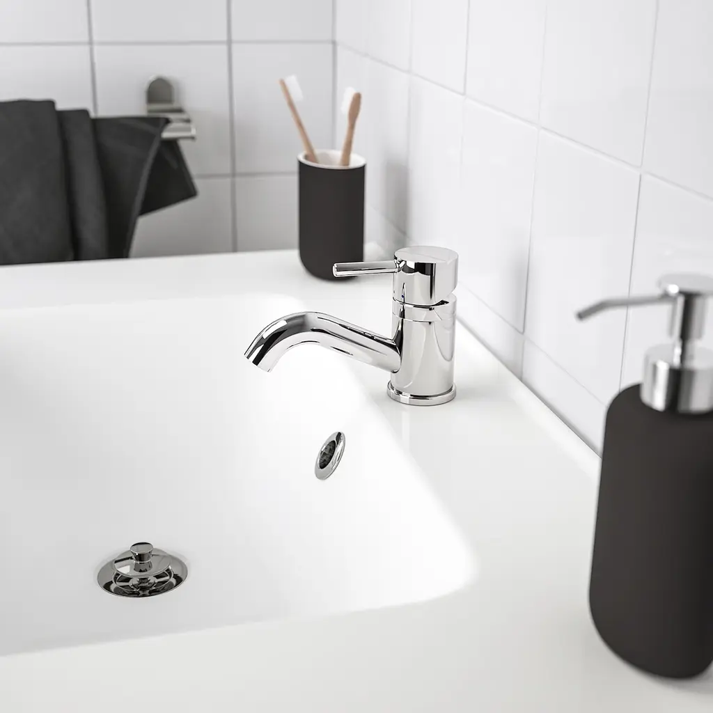 PILKÅN Bath faucet - chrome plated. 10-year Limited Warranty. Read about the terms in the Limited Warranty brochure. Hot water is released by turning the lever to the left. It is only then that hot water is consumed. Chrome-plated brass is a hard and durable surface that is easy to clean.