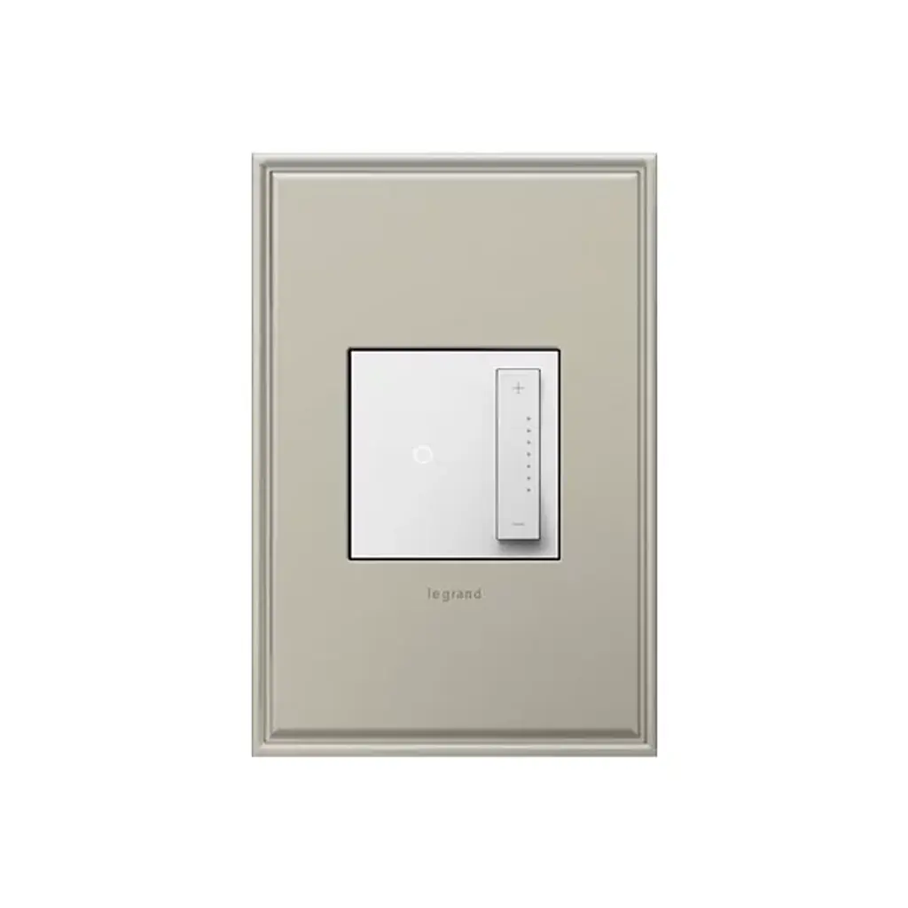 A true universal dimmer that, amazingly, can support incandescent, halogen, MLV, fluorescent, forward-phase ELV, dimmable CFL, and LED bulbs. This also eliminates the flickering, etc. that happens with non-adaptive dimmers. The Legrand Adorne SofTap Tru-Universal Dimmer features a micro-movement functionality, allowing you to turn lights on and off or dim them with a soft tap of the finger. Designed for newer or remodeled homes built after 1980. Requires neutral wire. Please consult a qualified electrician.