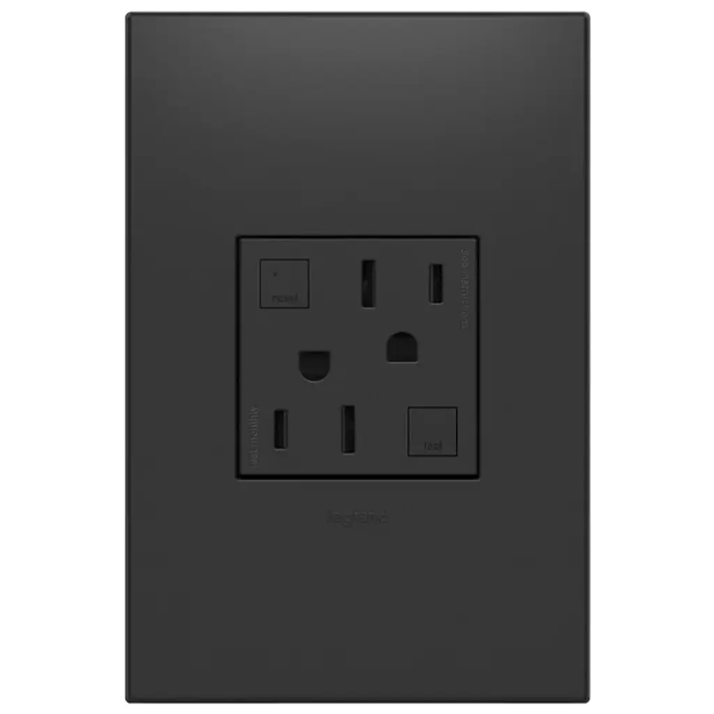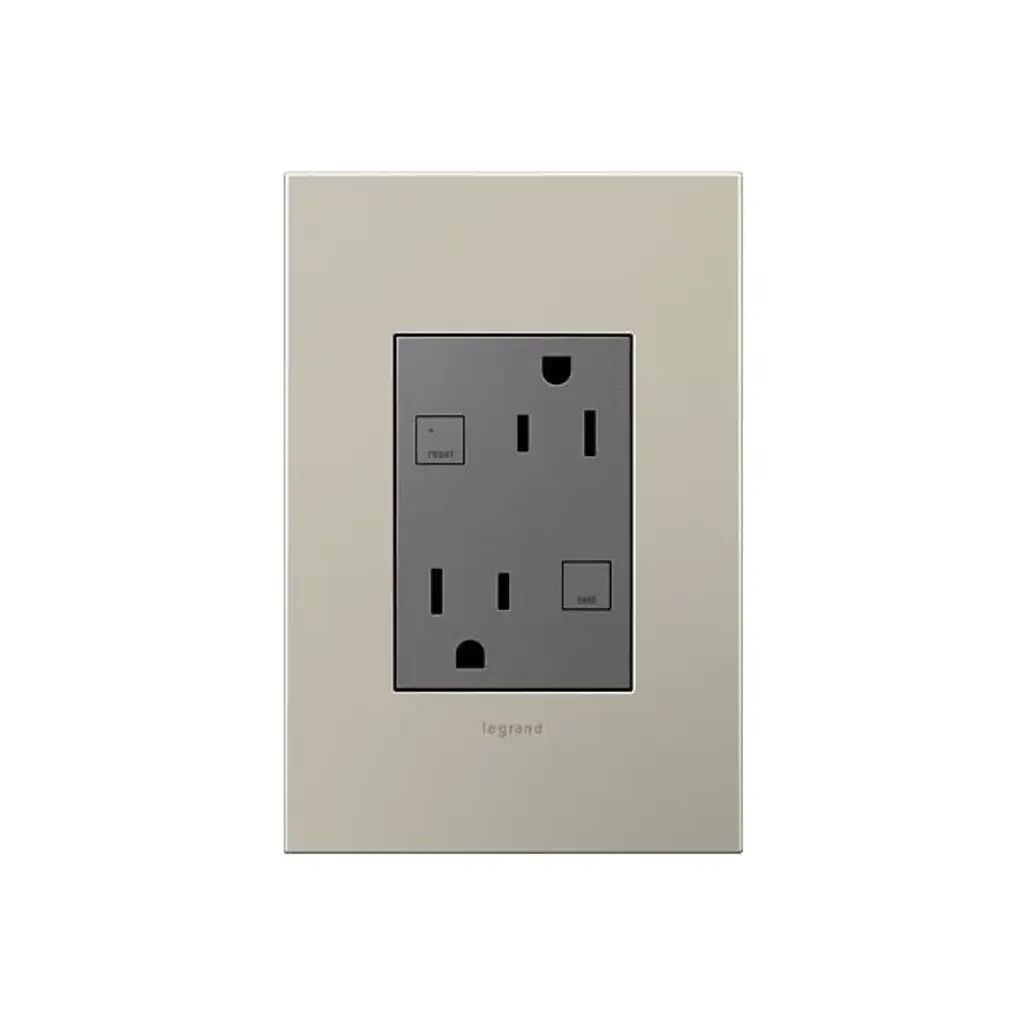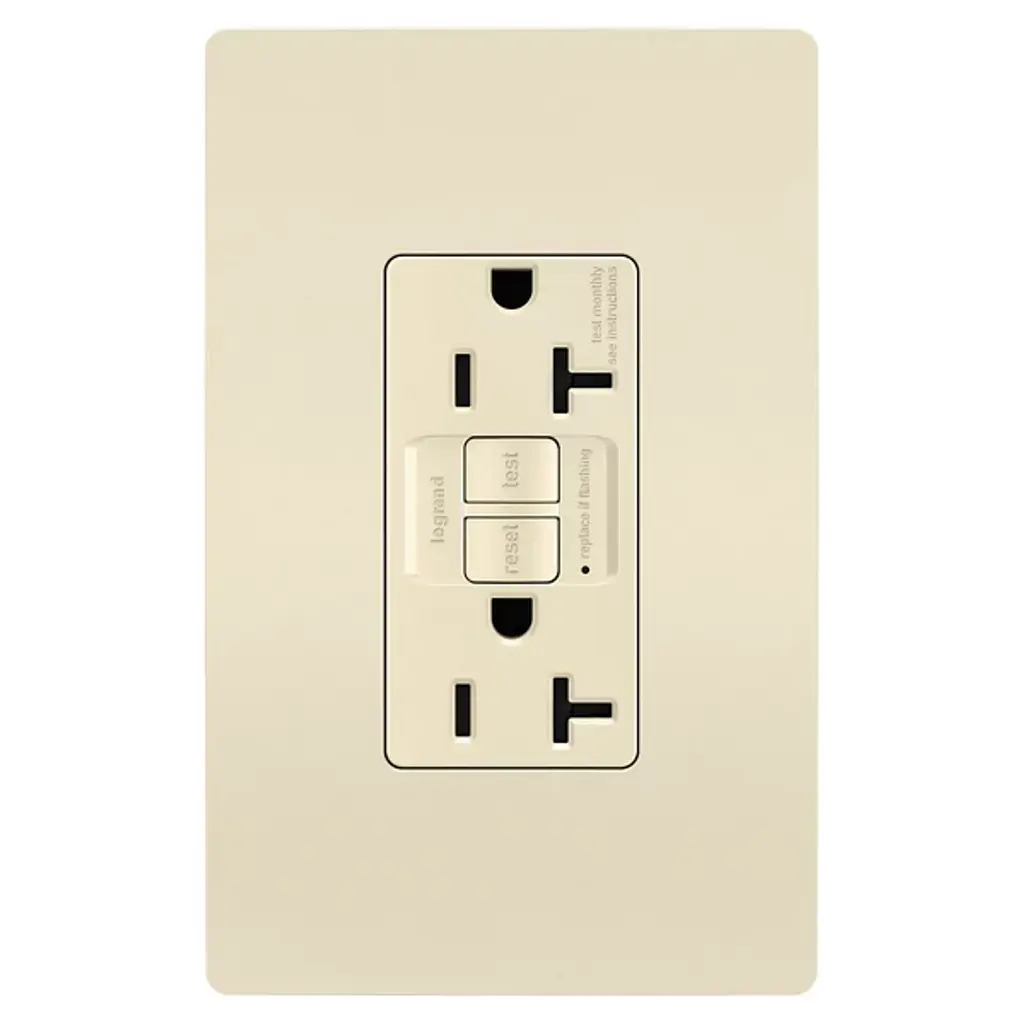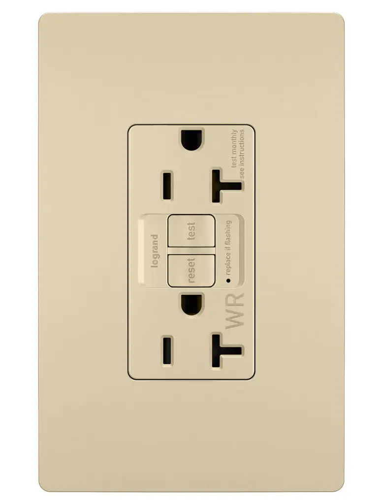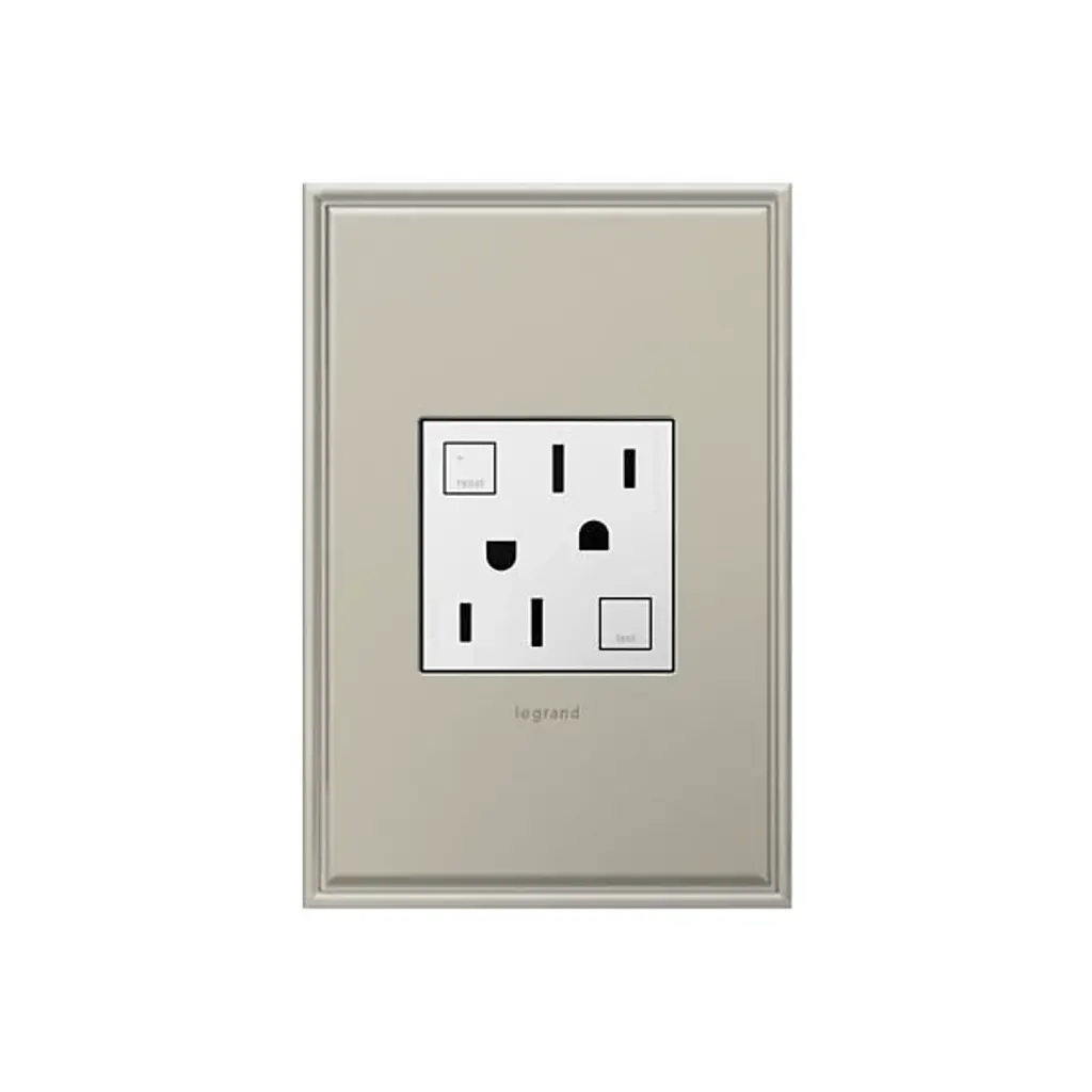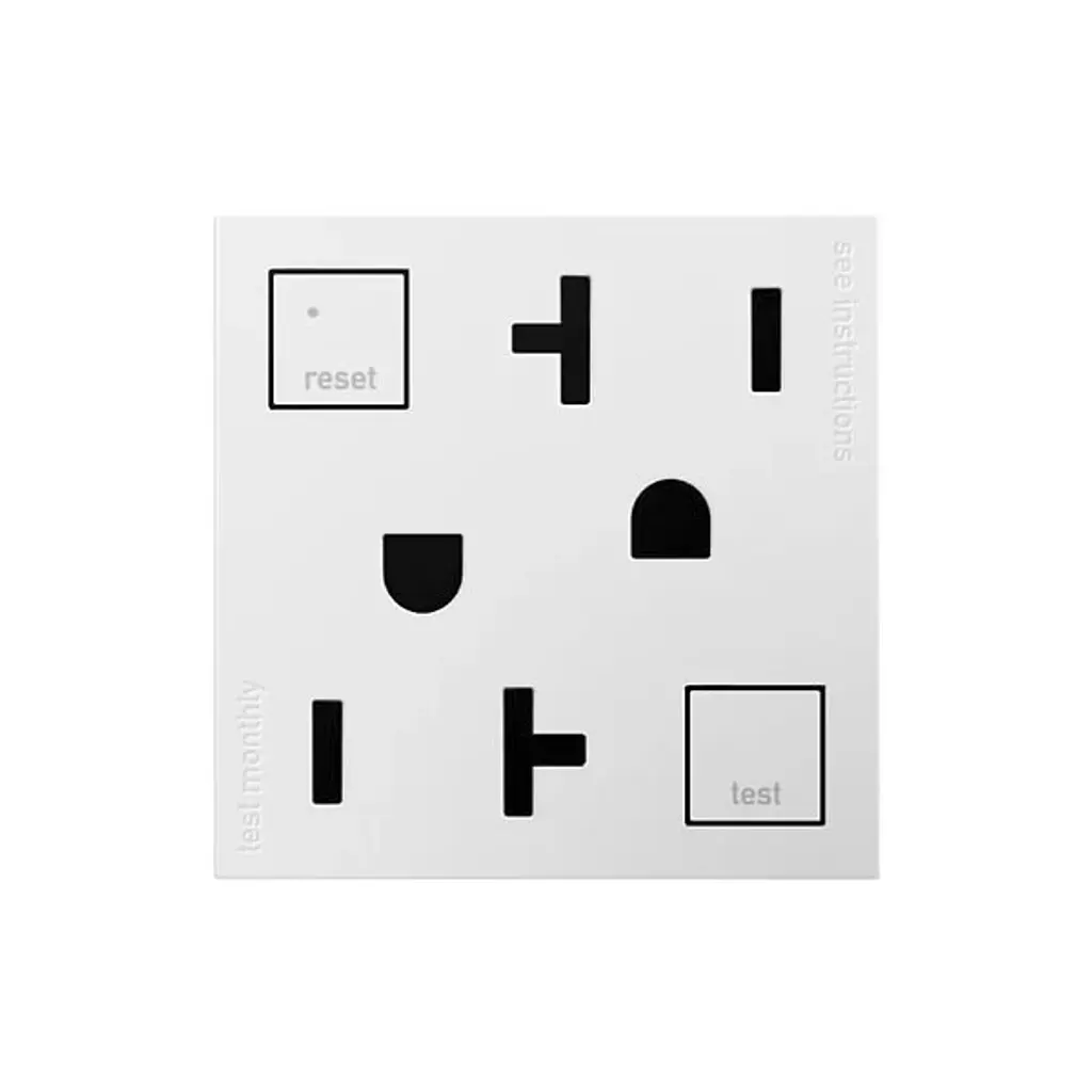 The Legrand Adorne Tamper-Resistant 20A GFCI Outlet provides protection against electric shock and is designed for used in kitchens, bathrooms and outdoors locations. It also features a tamper-resistant shutter system, which prevents children from pushing small objects into the outlet. Part of the Legrand Adorne collection of lighting controls and systems.