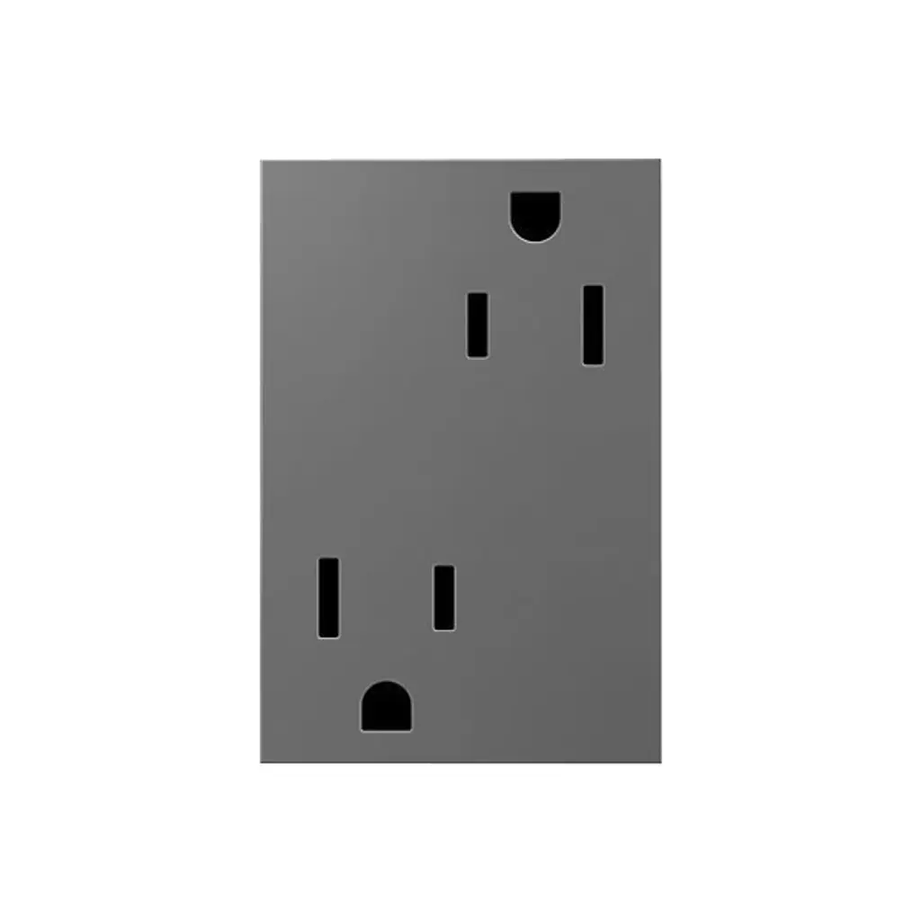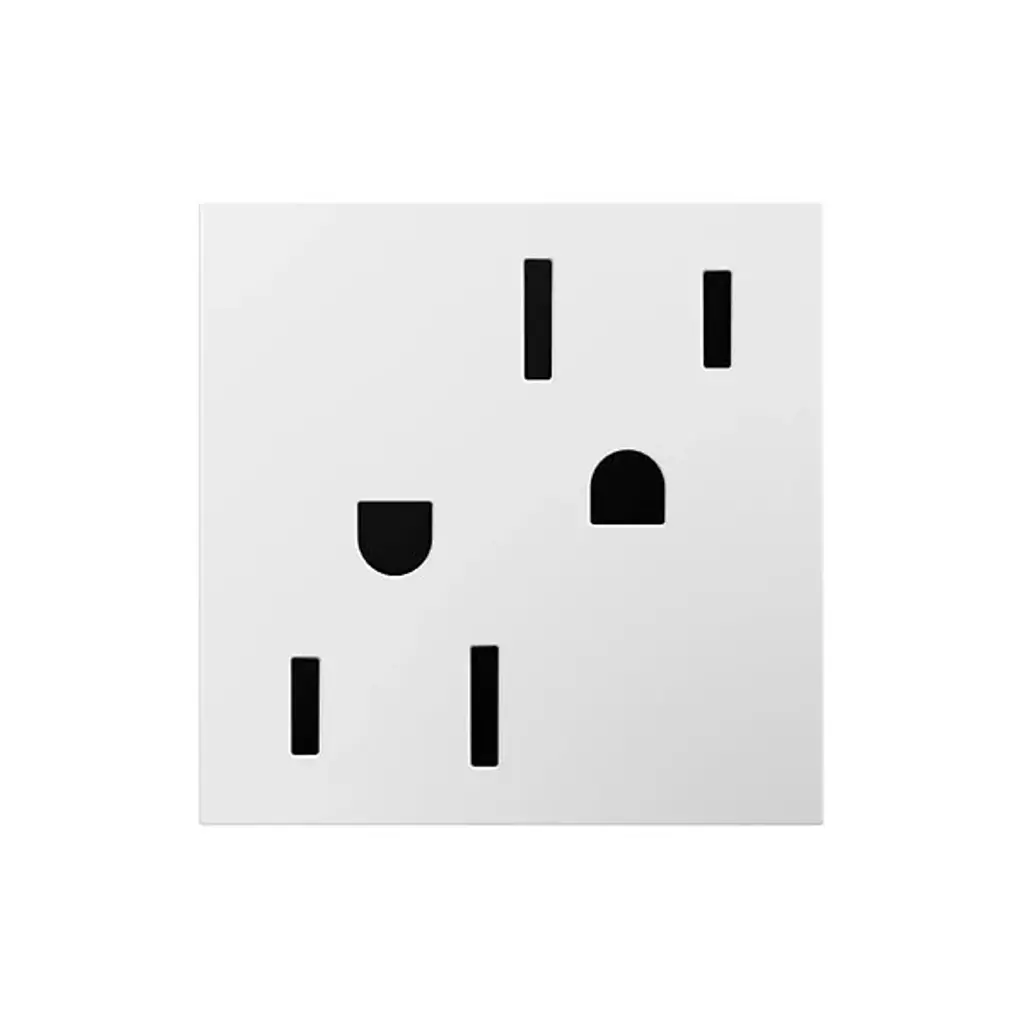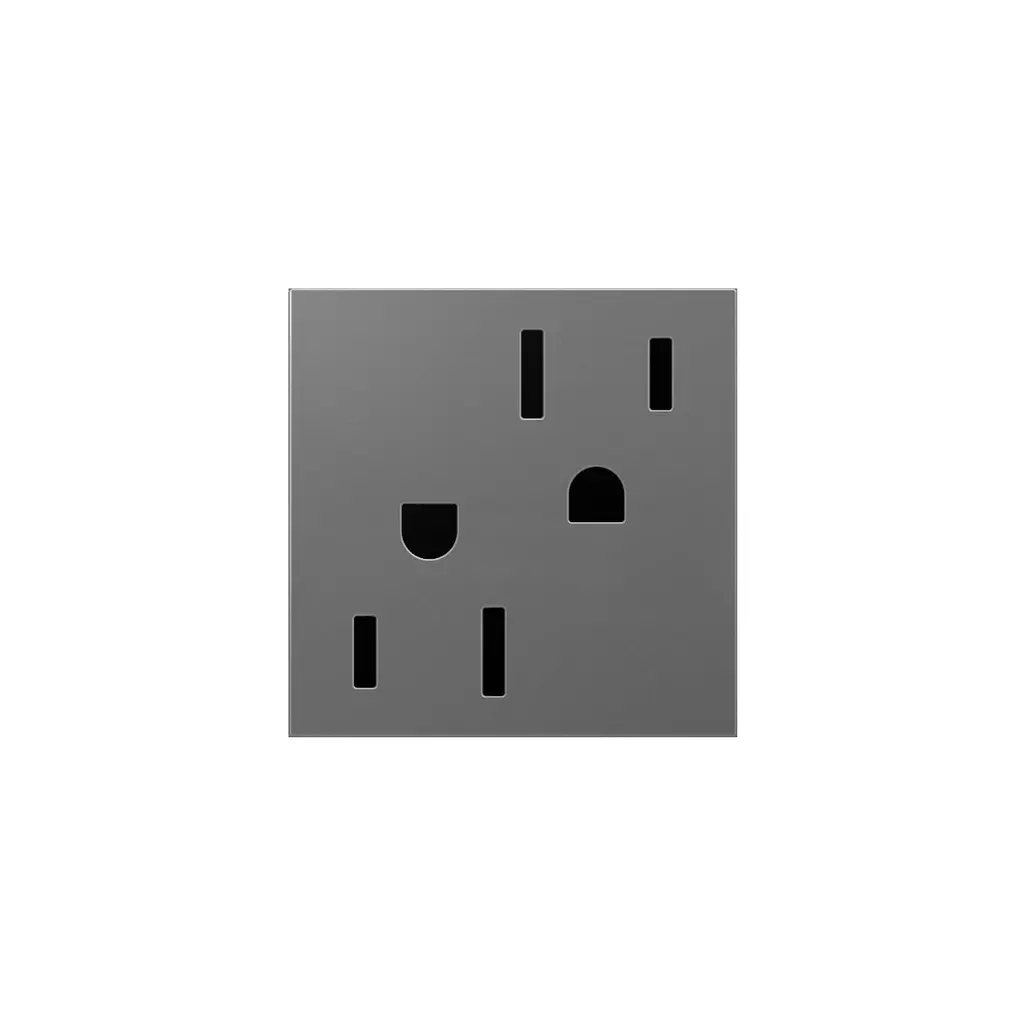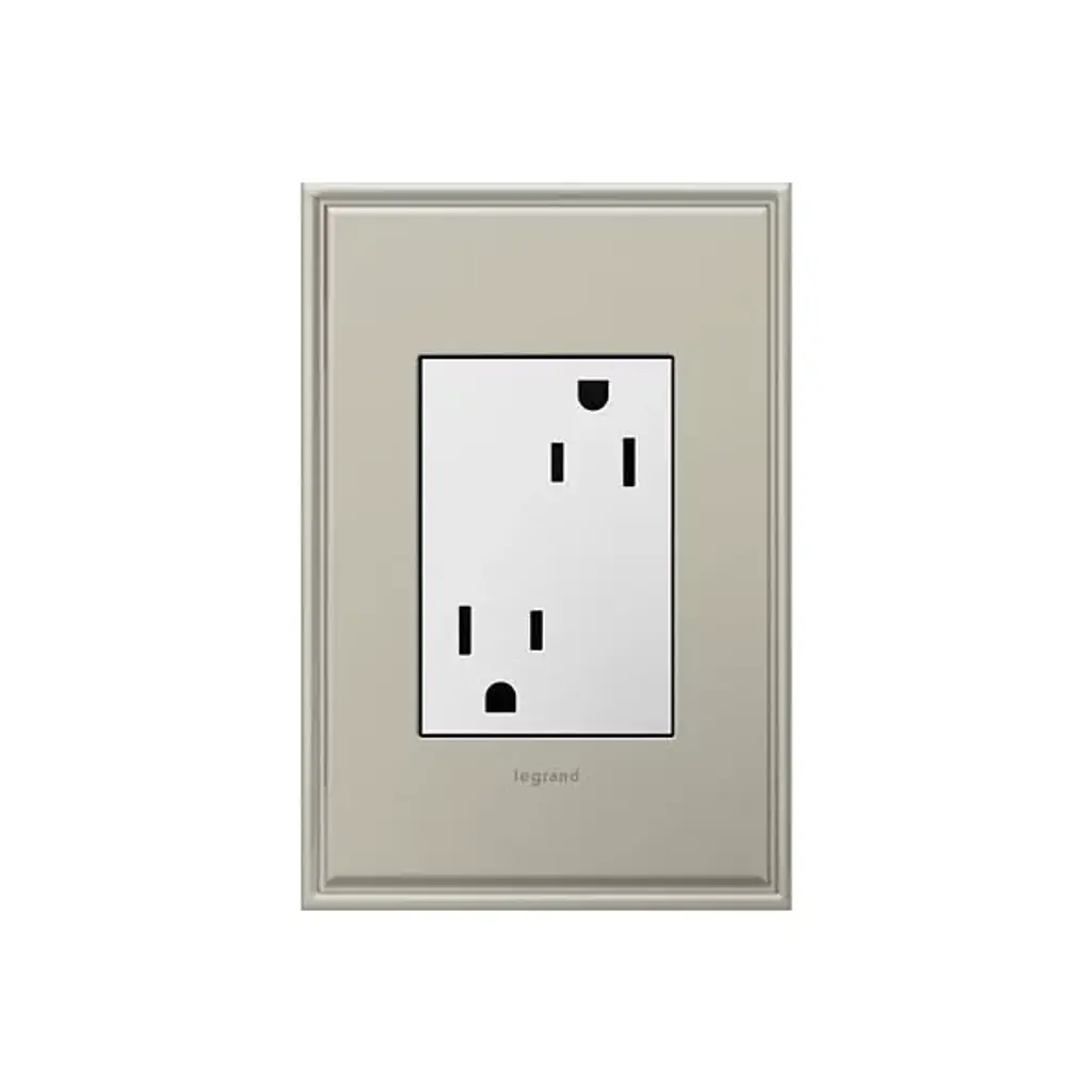 The Legrand Adorne Tamper-Resistant 3-Module Outlet features a patented child-safe shuttered design, preventing small objects from being pushed into the outlet. This bigger 3-Module, 2-plug outlet offers more space around the plugs to accommodate larger items such as phone chargers.