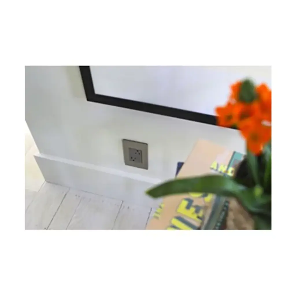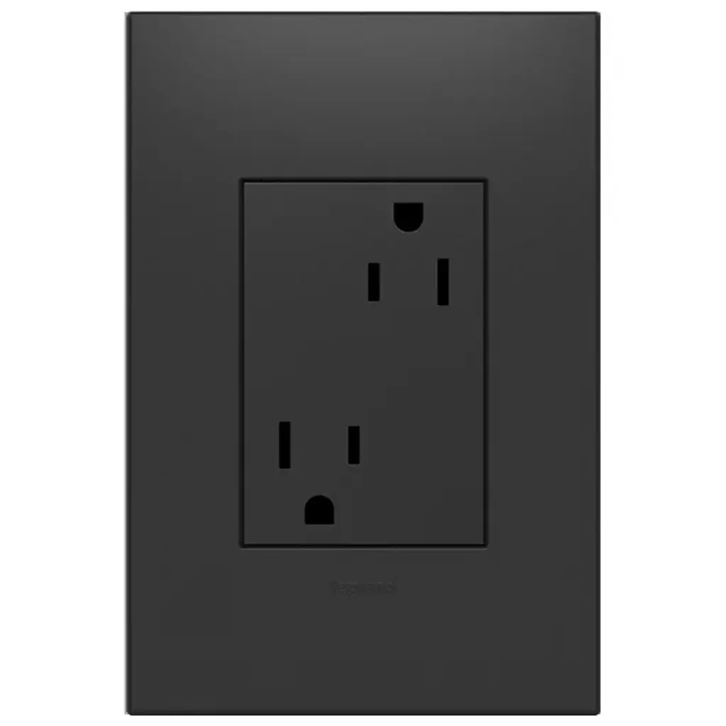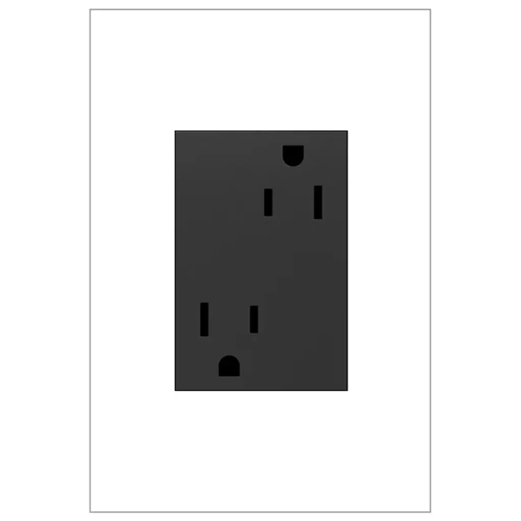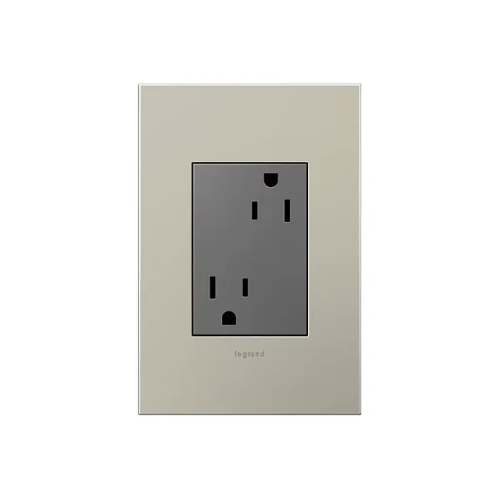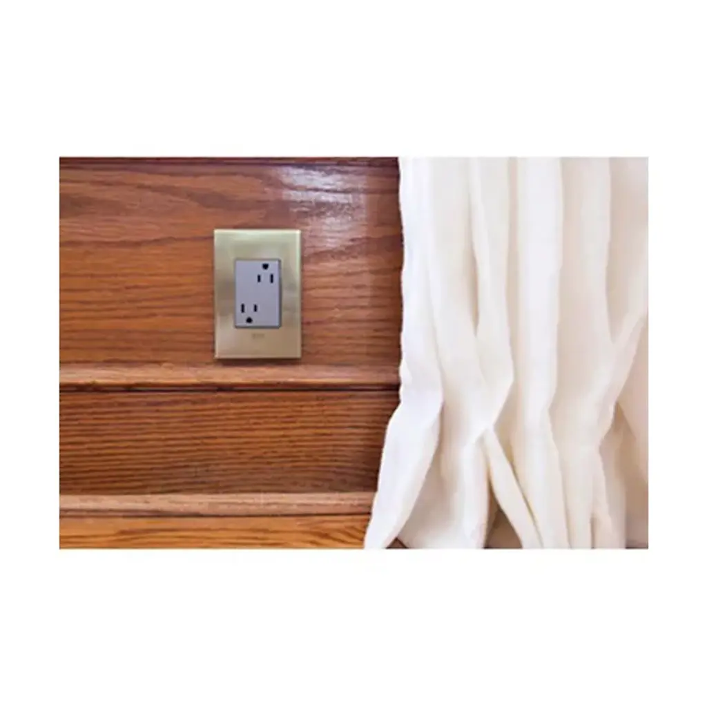 The Legrand Adorne Tamper-Resistant 3-Module Outlet features a patented child-safe shuttered design, preventing small objects from being pushed into the outlet. This bigger 3-Module, 2-plug outlet offers more space around the plugs to accommodate larger items such as phone chargers.
