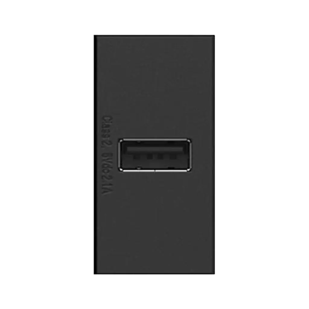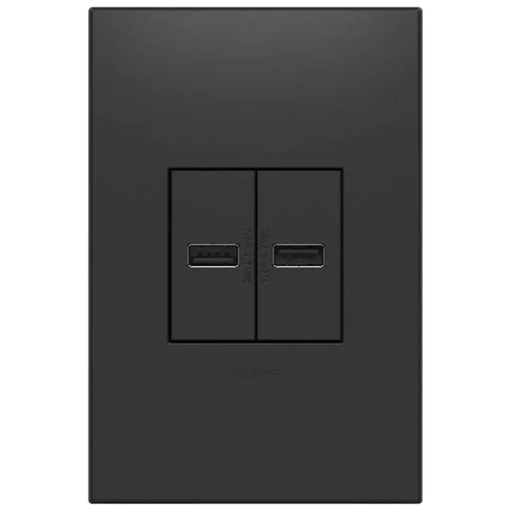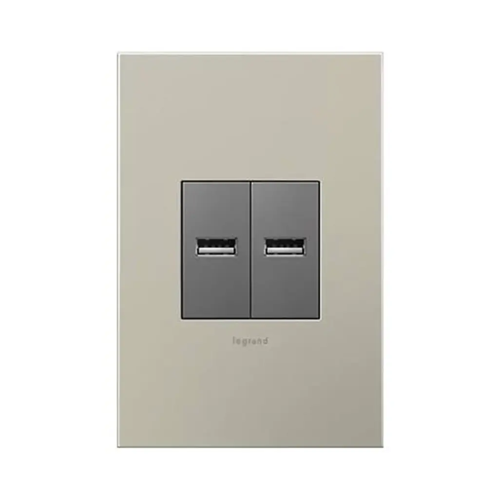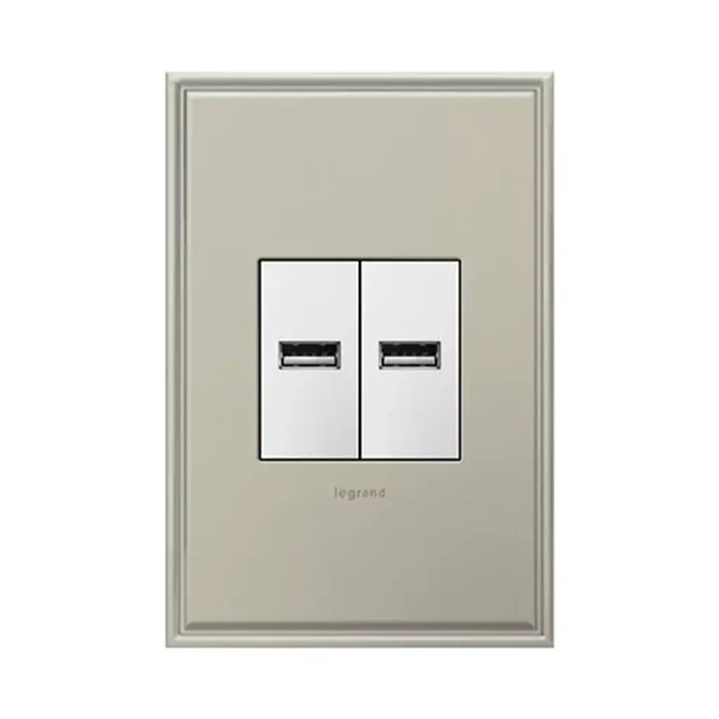 The Legrand Adorne USB 1-Module Outlet is designed for charging mobile devices, such as phones and tablets. It can be paired with a switch or outlet in a 1-Gang, 3-Module plate for more functionality in one box. Part of the Adorne collection of home control systems.