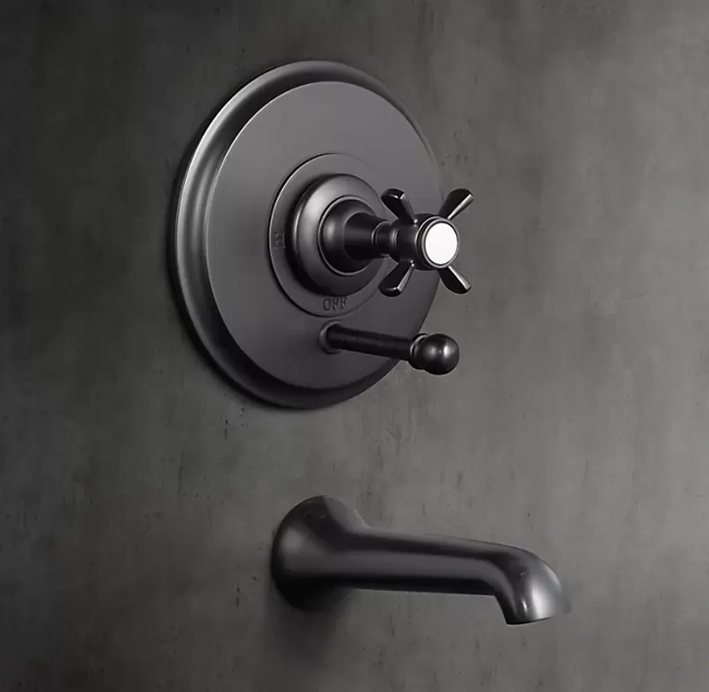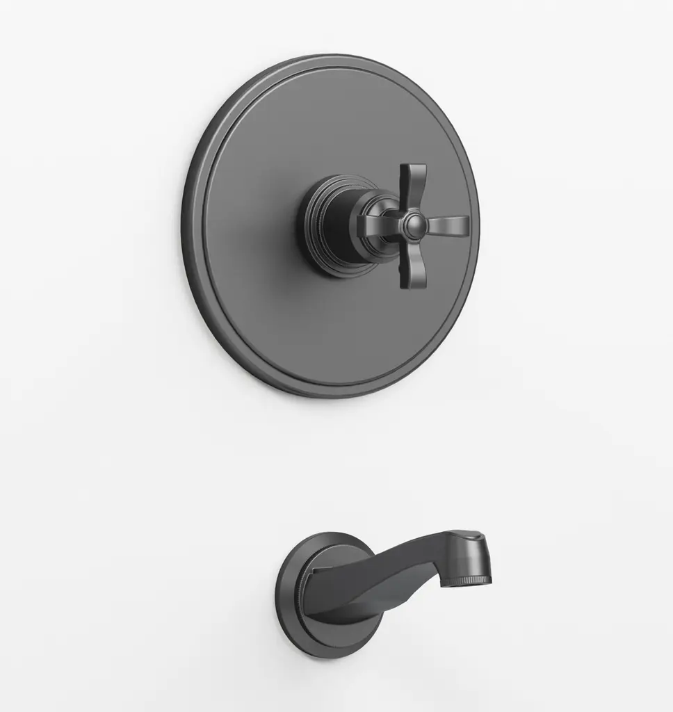 Vintage Cross-Handle Balanced-Pressure Tub & Shower Valve & Trim Set With Bath Spout