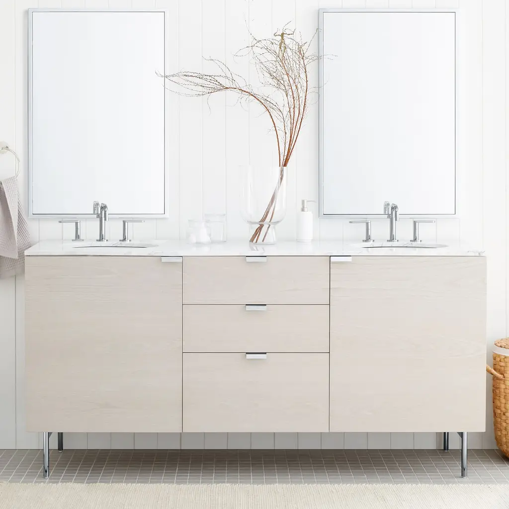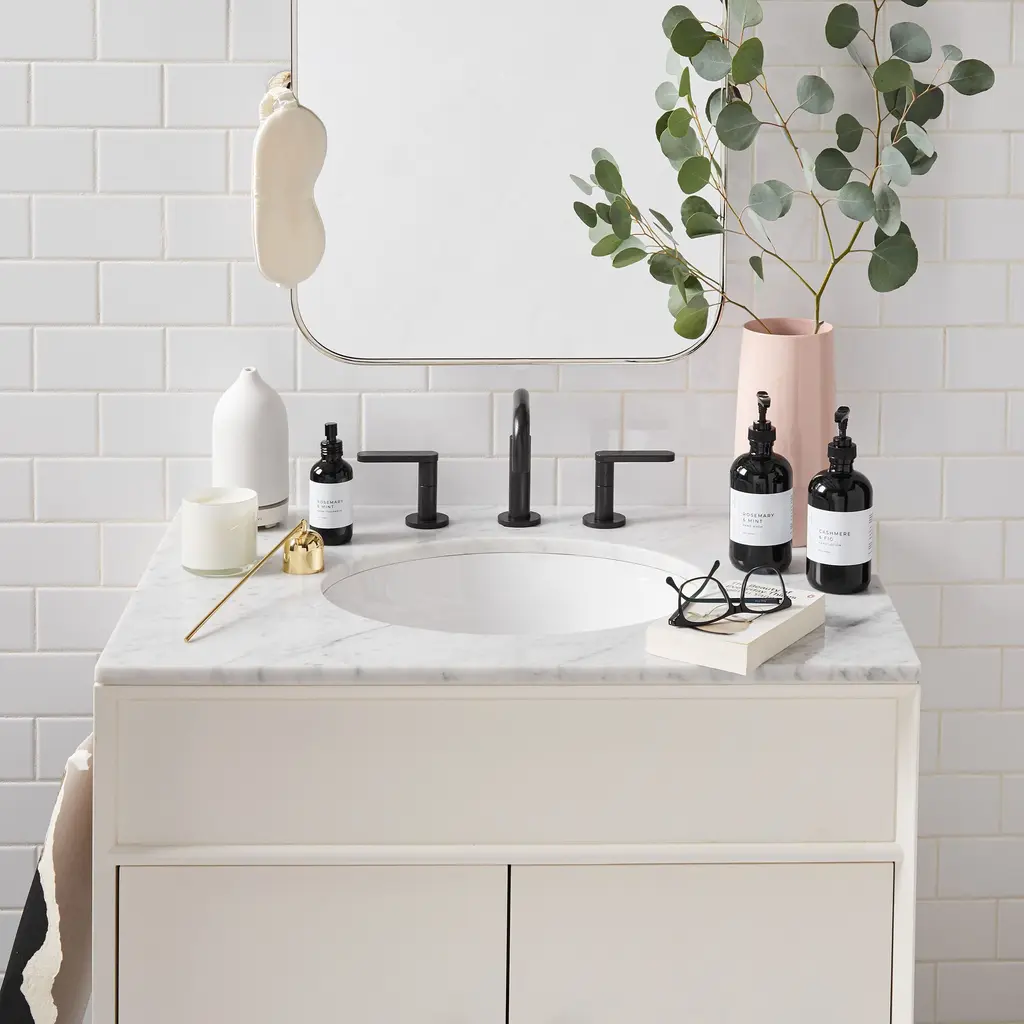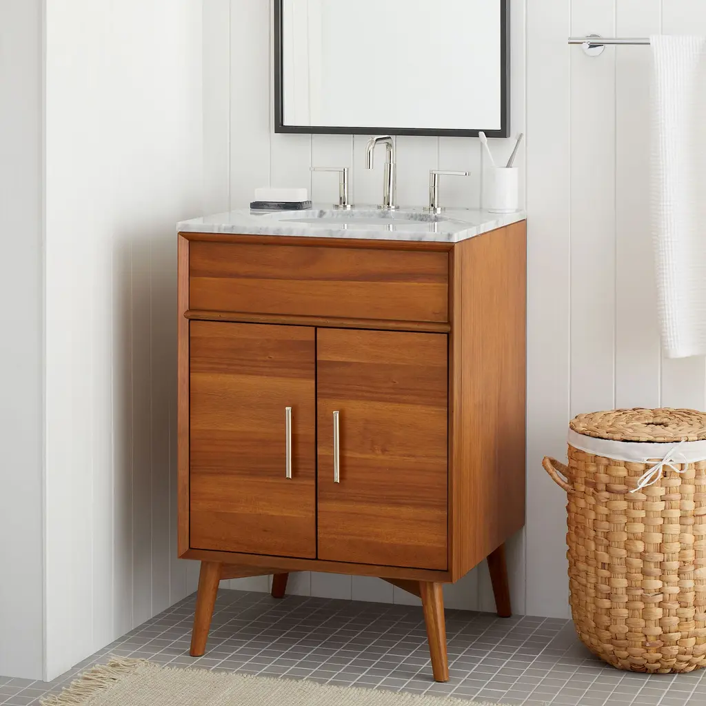 It's simple, clean design. Pick the finish that works best for you. Fits into a variety of bathroom styles.