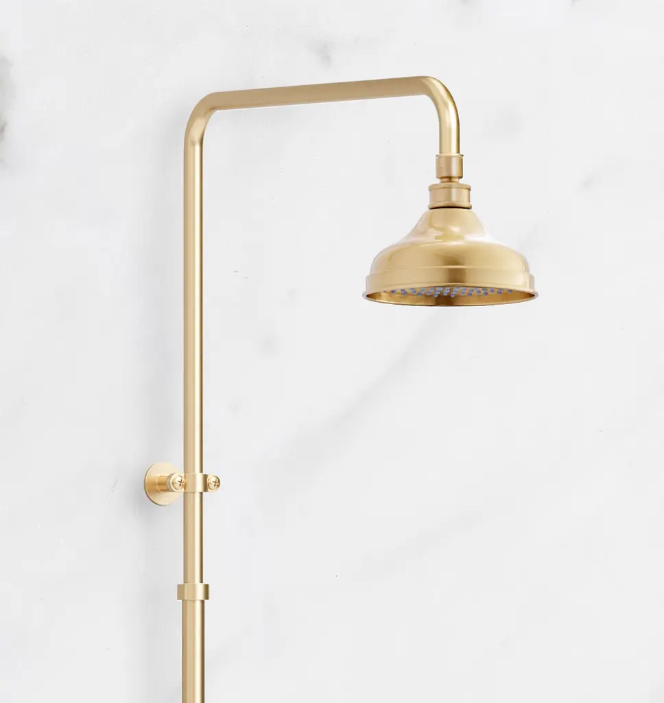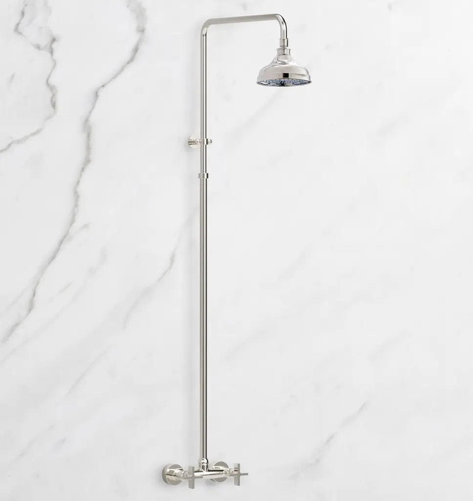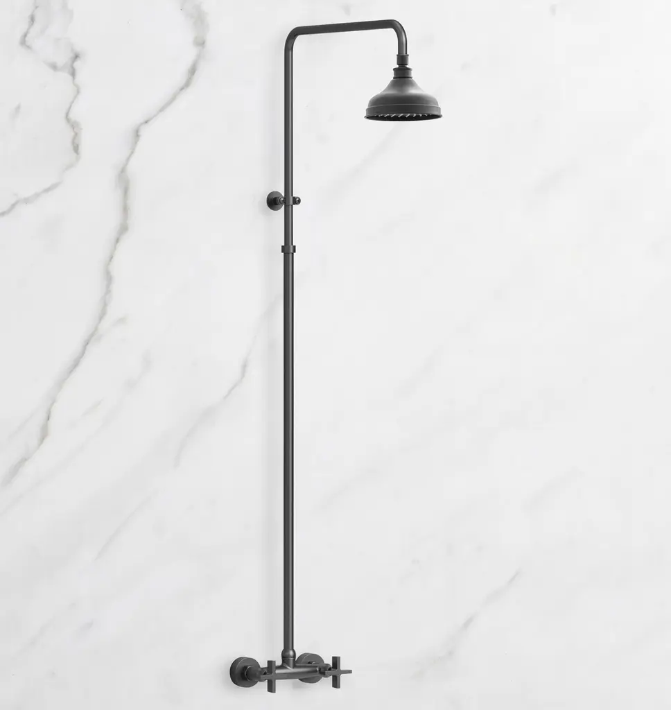 Inspired by the simple lines and organic spirit of Northwest Modernism, our West Slope Bath Collection features distinctive details that add a timeless sense of style to every piece. With modern exposed pipes and an anti-scald pressure-balance valve, the West Slope Exposed Shower Set has an adjustable height to meet your personalized needs. Ideal for pairing with rain shower heads, shower head sold separately. Designed in collaboration with Watermark, a plumbing mainstay for over 30 years, our collection of timeless solid brass faucets and shower sets are manufactured, assembled, and finished in their Brooklyn factory.