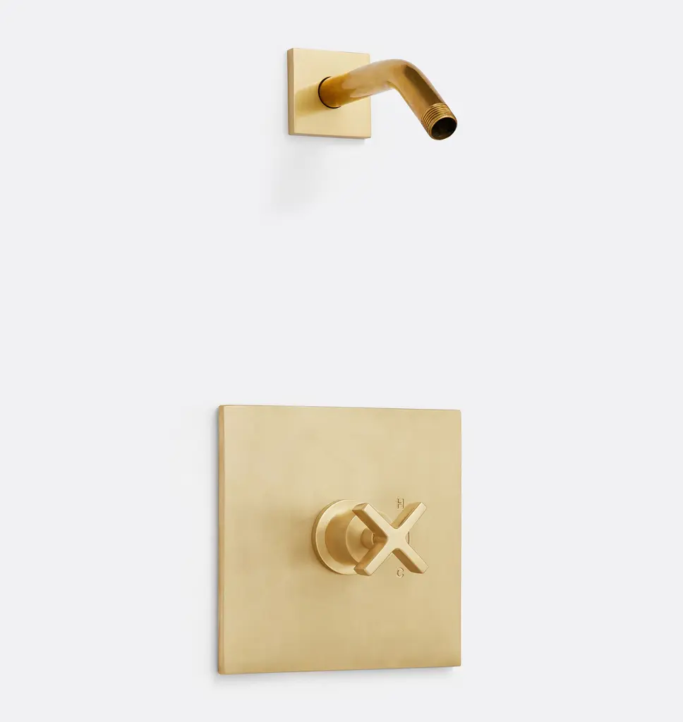 Flat curves and smooth simplicity define the Yaquina hardware collection. This pressure-balanced shower set makes a versatile addition to any shower, complete with a sleek single knob to control the pressure and temperature. Designed in collaboration with Watermark, a plumbing mainstay for over 30 years, our collection of timeless solid-brass faucet and shower sets are manufactured, assembled, and finished in their Brooklyn factory. Details You'll Appreciate Sleek design matches our full Yaquina bath collection Pressure-balanced set controls temperature and pressure with one knob Product Specifications Solid brass construction Ships directly from vendor Made exclusively for Rejuvenation in Brooklyn, New York Care Instructions Do not use cleaners that contain abrasives, harsh chemicals, alcohol, or other organic solvents. Avoid using any cleansers or pads/sponges that are unsafe for polished metallic surfaces. Most green, fibrous pads/sponges contain microscopic mineral particles that can scratch a faucet's finish. Cleaner manufacturers may change their formulations at any time; therefore, Watermark does not recommend any specific cleaner. Immediately after cleaning your faucet, wash off remaining cleaner with water. To remove water spots, use warm water and a soft, damp cloth. Hard water stains can be removed with a 50/50 solution of white vinegar and water, followed by rinsing with water. To preserve the luster of your faucet, occasionally apply a high-quality non-abrasive wax, such as Flitz Faucet Wax +.
