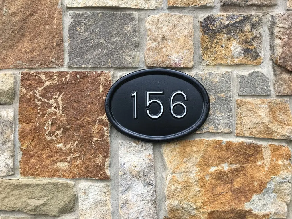 TRADITIONAL SERIES:The Traditional address plaques feature one of a kind designs finished in signature brass or aluminum reveal border and numbers allowing the numbers to be seen from greater distances. They are cast solid from superior quality pure authentic brass or aerospace grade aluminum, are extra thick, are durable, and are naturally rust-free.ALUMINUM ALBERT ADDRESS PLAQUE: • Dimensions: 12 3/4" X .5" X 9" • Cast solid aerospace grade aluminum • Horizontal orientation • Color: black/silver • Accommodates up to 4 numbers • 3 1/2" Numbers in Times Font • Wall Mount • Clear coated - Weather resistant • Cast solid metal as one piece, the numbers are NOT removable • Durable, thick (1/2"), strong, and will last a lifetime • Hardware included, screw heads are color matched • Made in the USAORDER DETAILS:IMPORTANT: All orders are custom made. Please message us the numbers you would like on your plaque (double check your numbers). This plaque can fit between 1 and 4 numbers. If you have any questions please send us a message.HANDMADE PRODUCTS:Please note that all our products are meticulously handmade by master artisans one piece at a time. Due to this process, there are slight variations from one item to the next. Such variations are inherent in the manufacturing of handmade products, expect minor distinctions that will make your purchase special and truly one of a kind.