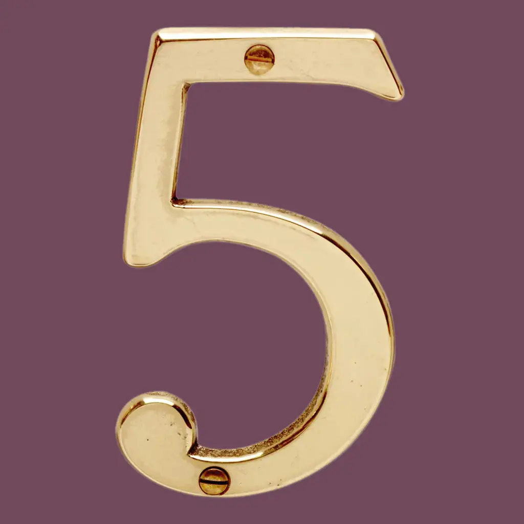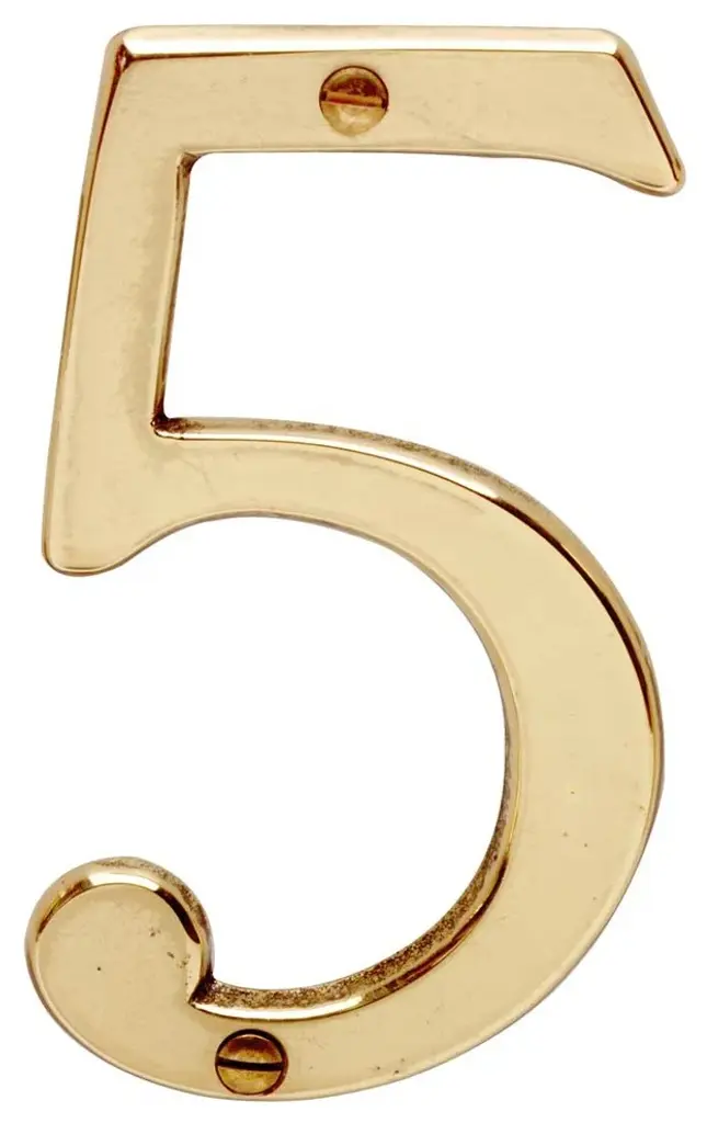 Bright Solid Brass 3 7/8" Address House Number '5' | Renovator Supply
