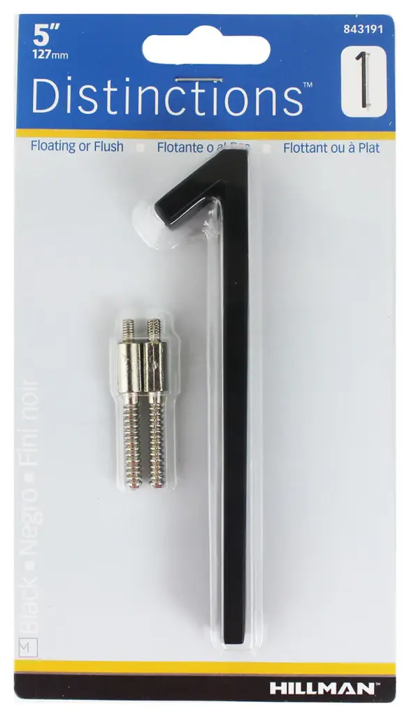 Dark Bronze finishEach number is 5" tall, and comes with standoff to raise the number 1" off the mounting surface.Cardboard mounting template included in package.• Numbers only, letters are not available.Installation notes: (also included in package.1. Other tools needed for installation: drill, silicone or glue.2. Do not over tighten
