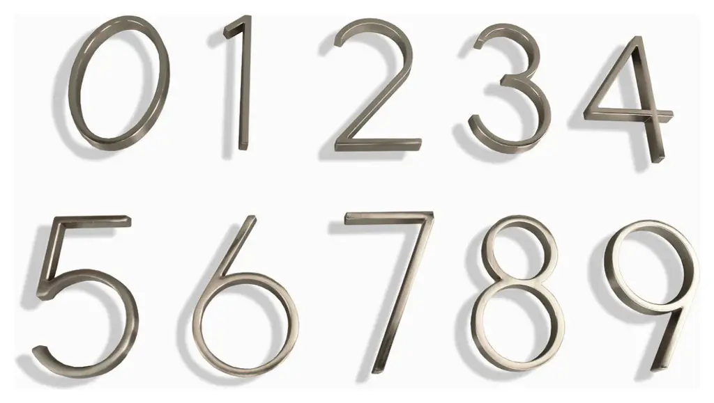 Brushed Nickel finish, number 1.Each number is 5" tall, and comes with standoff to raise the number 1" off the mounting surface.Cardboard mounting template included in package.• Numbers only, letters are not available.Installation notes: (also included in package.1. Other tools needed for installation: drill, silicone or glue.2. Do not over tighten