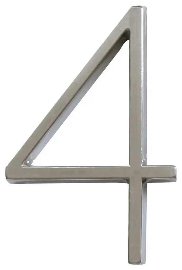 Brushed Nickel finish, number 4.Each number is 5" tall, and comes with standoff to raise the number 1" off the mounting surface.Cardboard mounting template included in package.• Numbers only, letters are not available.Installation notes: (also included in package.1. Other tools needed for installation: drill, silicone or glue.2. Do not over tighten