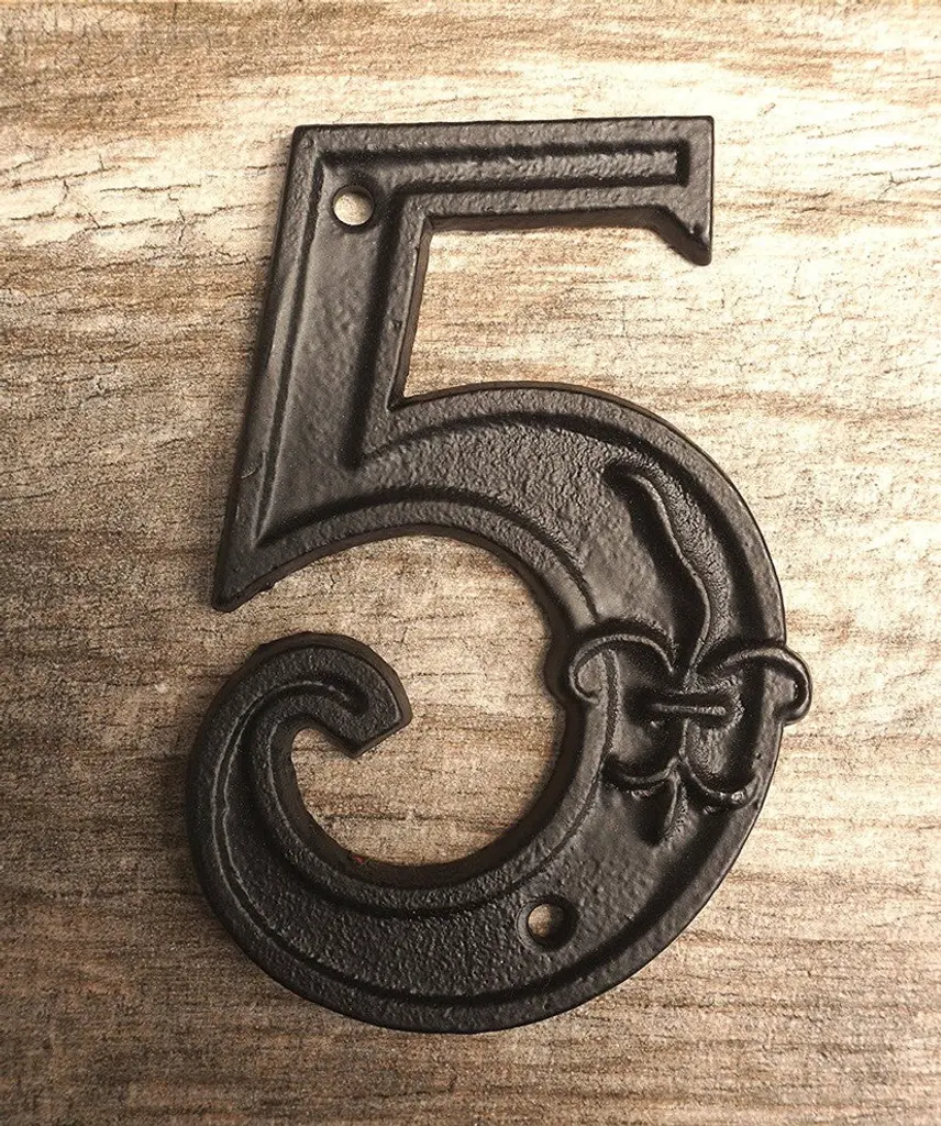 Strong and Sturdy, build to last for years to come. Cast Iron material is maintenance free since they don''t rust & break easily, perfect for Home or office use.Vintage Black finish with Fleur de lis design embossed. Hand made product with rustic & Ornate look , Easy to install on wood, brick or cement wall etc.Large enough to be seen from the street. Measures 4"" X 0.5". Matching screws included.Make your house numbers unique and attractive because this is the first thing people look before they enter your home.