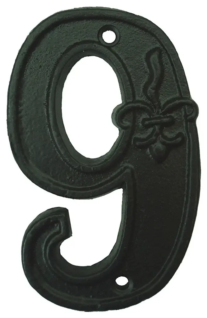 Lulu Decor, Cast Iron House Number With Fleur De Lis Design, Vintage Black, 9