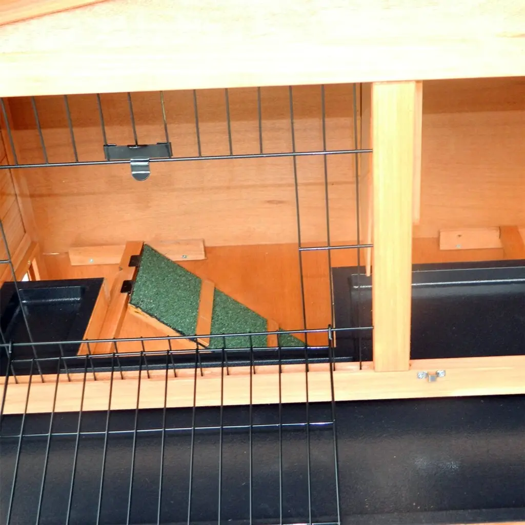 Introductions: This high quality large Rabbit House Chicken Coop is made of fully treated and grooved wood, coated with water based preservative to help last through the seasons. This house is designed with a living room for sleeping, and running area for playing. Features: 1. Great for rabbits, chickens, ducks, and other poultry 2. Slide-out plastic tray allows for easy cleaning access 3. Built-in window with a door for better air condition and easy food/water access 3. Green asphalt composite material waterproof roof prevent water penetration 4. Lockable metal slide bolts on all doors (except door in the window) 5. Include a ramp for your animals to get in and out 6. Heavy duty spray wire helps keep rabbits in and predators out 7. Provide your rabbits with an affordable, durable and comfortable habitat 8. Easy to assemble and portable Specifications: 1. Dimensions: (39.96 x 21.46 x 39.21)" / (101.5 x 54.5 x 99.6)cm (L x W x H) 2. Weight: 564.38oz / 16000g 3. Material: Fir Wood & Plastic & Asphalt & Welded Mesh 4. Size: 40" 5. Waterproof: Yes 6. Color: Natural Wood Color 7. Suitable for: Rabbits, Chickens, Ducks, and Other Poultry 8. Type: Gable Roof 9. Upper Fence Dimensions: (16.77 x 11.81)" / (42.6 x 30)cm (L x W) 10. Small Door Dimensions: (11.57 x 11.61)" / (29.4 x 29.5)cm (L x W) 11. Lower Single Door Dimensions: (14.29 x 14.96)" / (36.3 x 38)cm (L x W) 12. Side Plastic Spray Network Dimensions: (14.61 x 14.42)" / (37.1 x 41.7)cm (L x W) 13. Ladder Stand Dimensions: (27.87 x 6.15)" / (70.8 x 15.7)cm (L x W) 14. Pallet Load-bearing: 9-12kg Package Includes: 1 x Living House 1 x Instruction