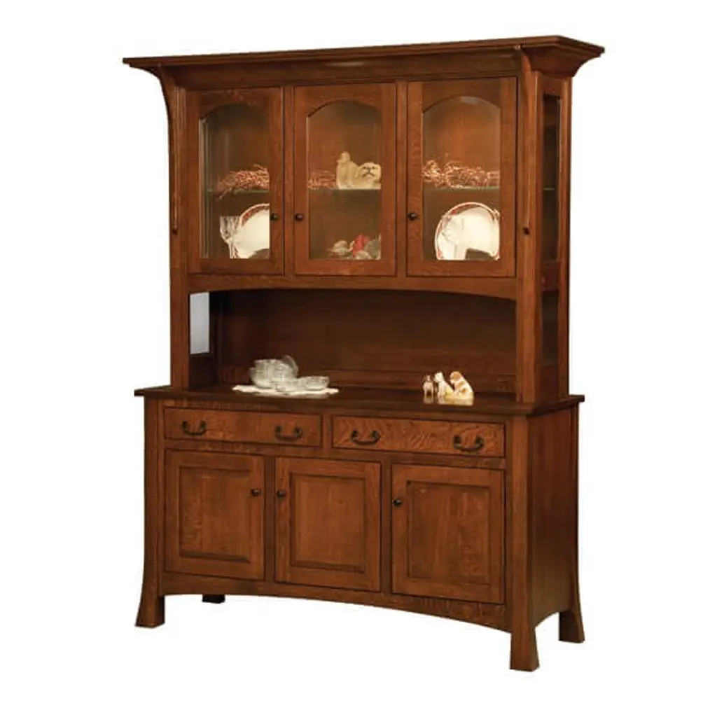The Amish Breckenridge hutch features sweeping Shaker legs, arched upper doors and a large shaker molding. As will all of our products, the Breckenridge hutch is made in the USA.
